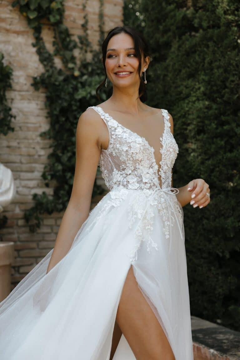 *Der Designer bietet unterschiedlichste Möglichkeiten zur Individualisierung deines Styles an: Ob du den Ausschnitt schließen oder tiefer setzen möchtest, dich für ein Design mit oder ohne Ärmel entscheidest, zusätzliche Spitze bevorzugst, den Rock mit oder ohne Schlitz wählst oder gar Rock und Oberteil von verschiedenen Kleider kombinierst – je nach Kleid ist fast alles nach Absprache und gegen einen Aufpreis möglich!