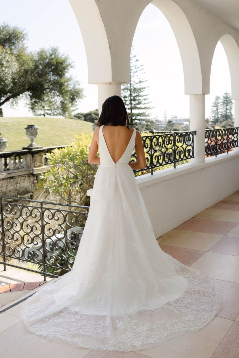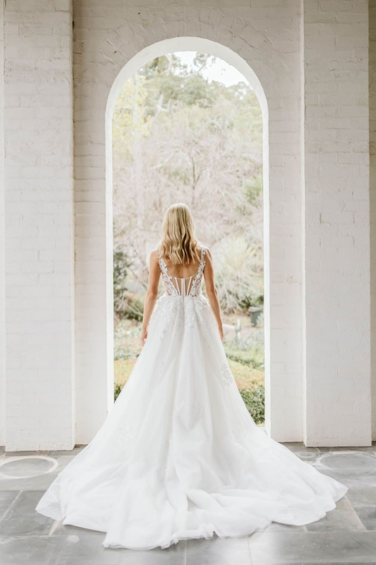*Der Designer bietet unterschiedlichste Möglichkeiten zur Individualisierung deines Styles an: Ob du den Ausschnitt schließen oder tiefer setzen möchtest, dich für ein Design mit oder ohne Ärmel entscheidest, zusätzliche Spitze bevorzugst oder den Rock mit oder ohne Schlitz wählst – je nach Kleid ist fast alles nach Absprache und gegen einen Aufpreis möglich!