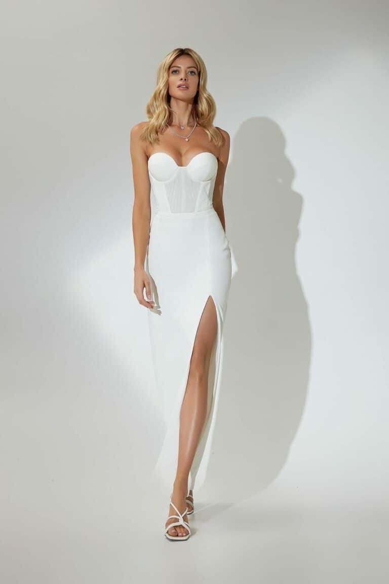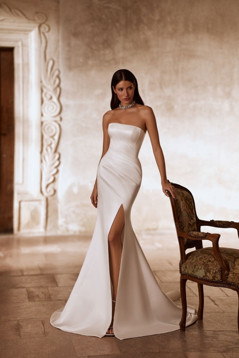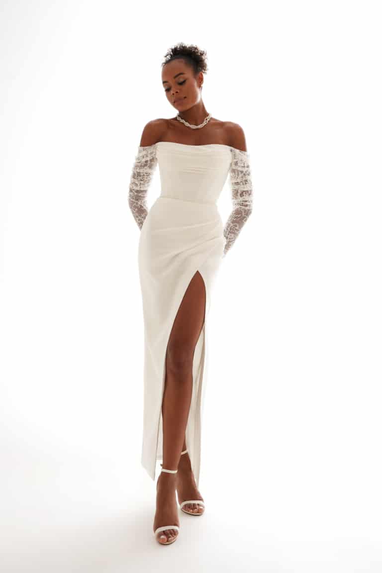 ie Kleider von Olya Mak sind eine atemberaubende, elegante Wahl für eine moderne Braut.