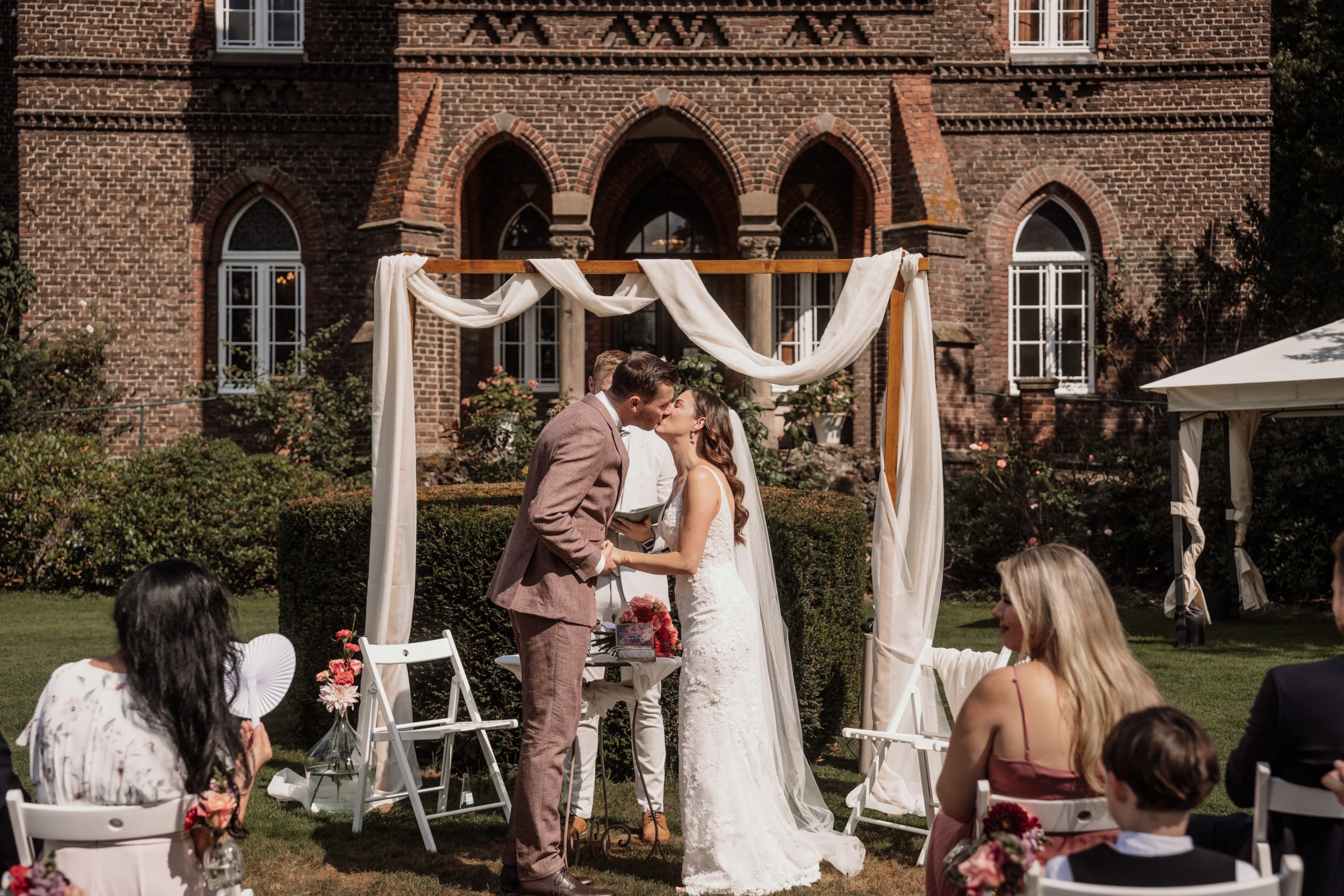 Unsere Hochzeit hat auf der wunderschönen Marienburg in Monheim stattgefunden. Es war eher romantisch klassisch gehalten. Blumen spielten an diesem Tag eine große Rolle und wurden sowohl in der Deko, als auch im Kleid aufgegriffen. Wir hatten den schönsten Tag unseres Lebens mit all unseren Liebsten drum herum und würden rückblickend Alles genau so machen.