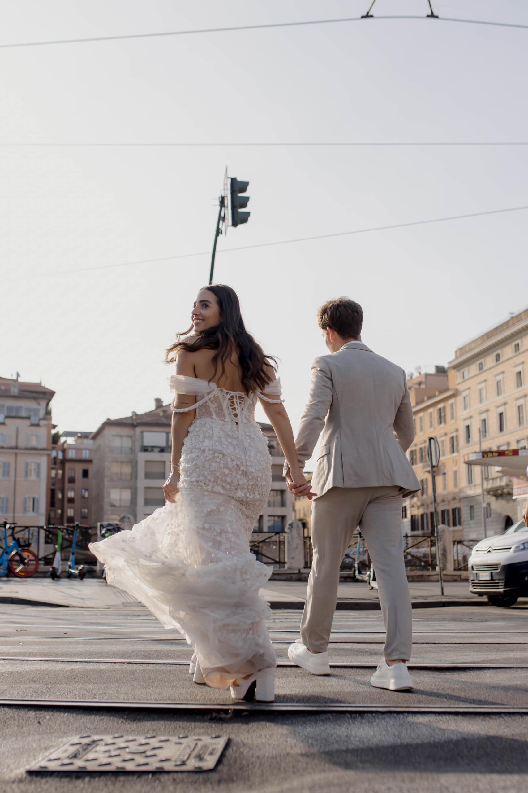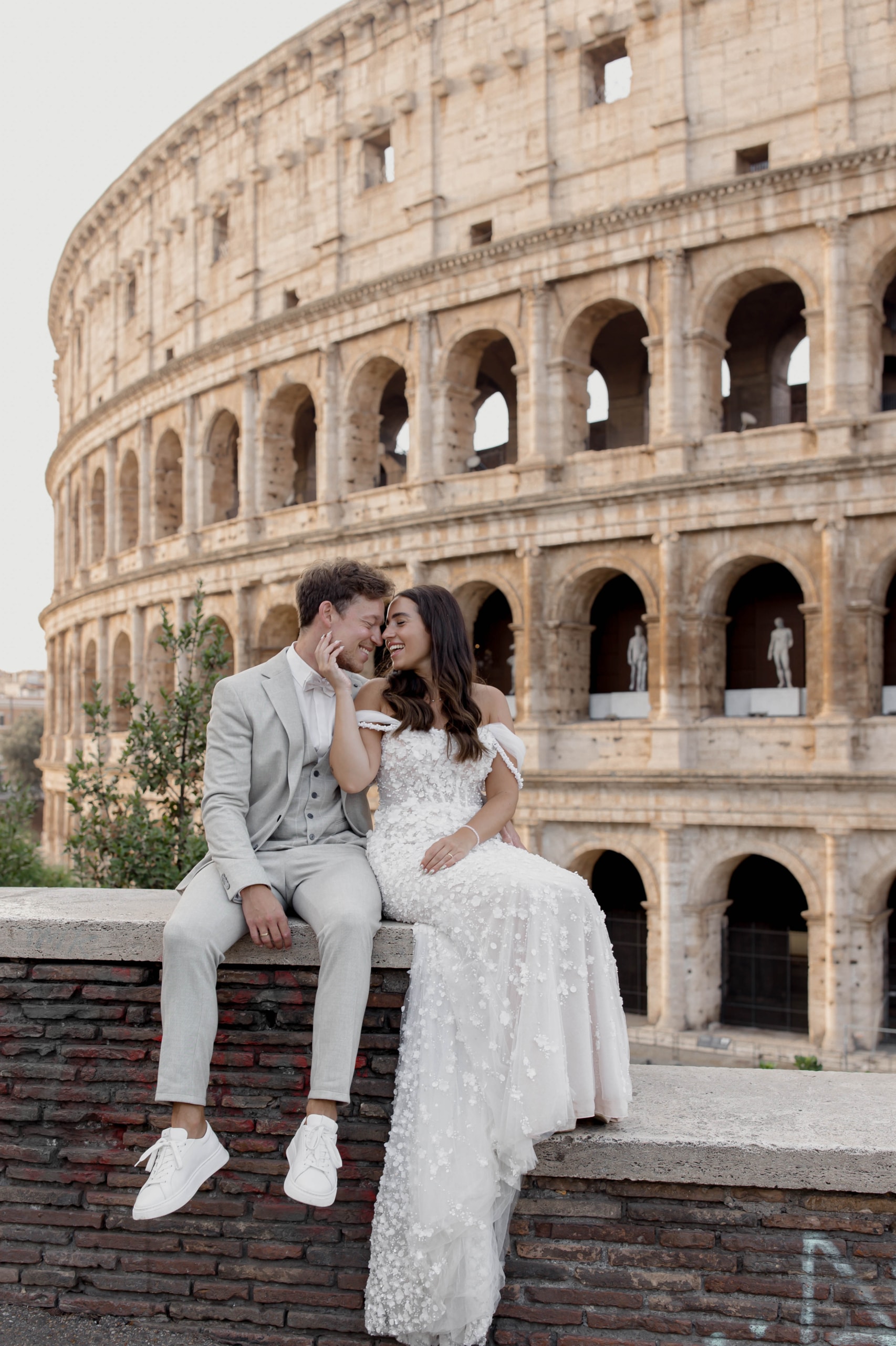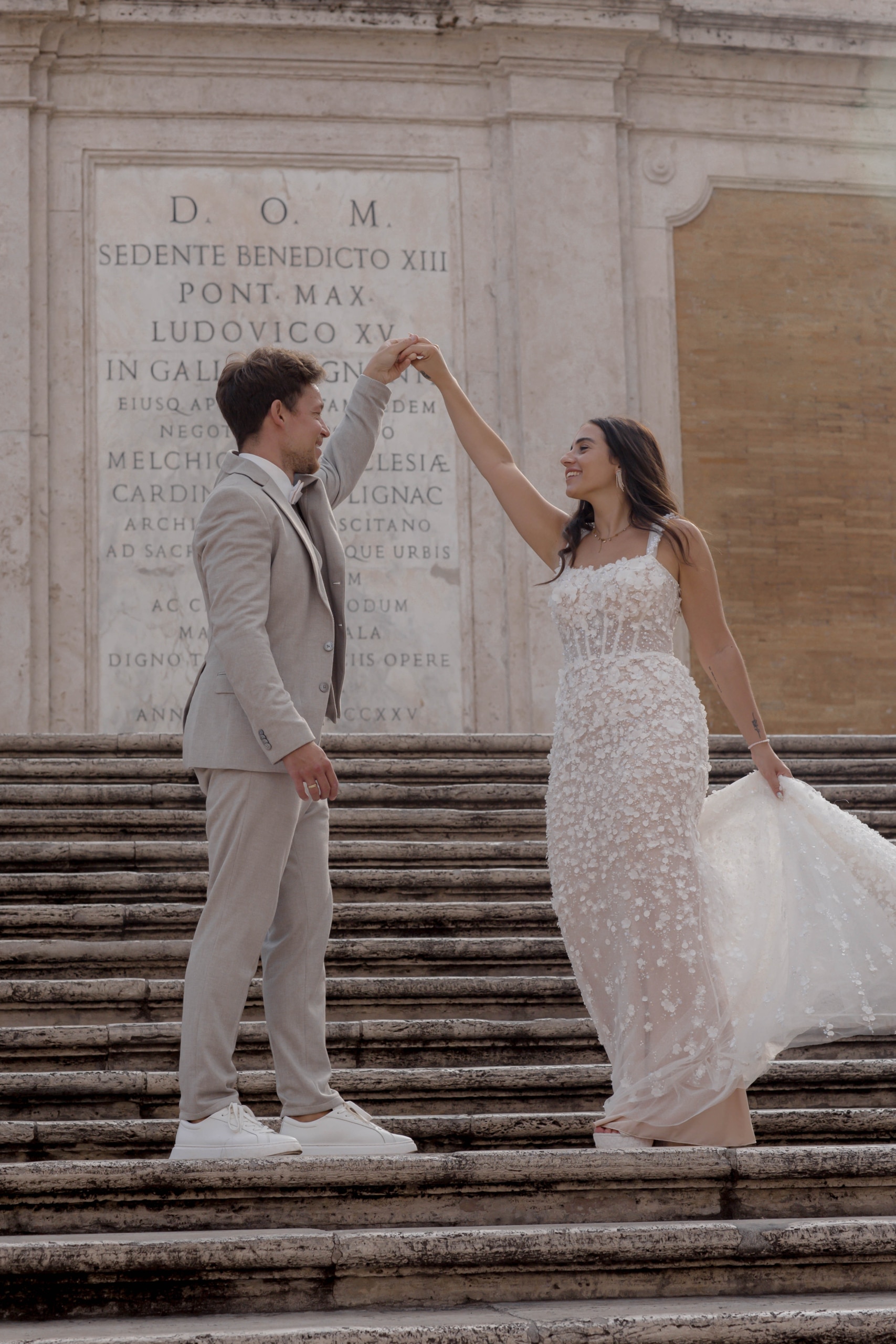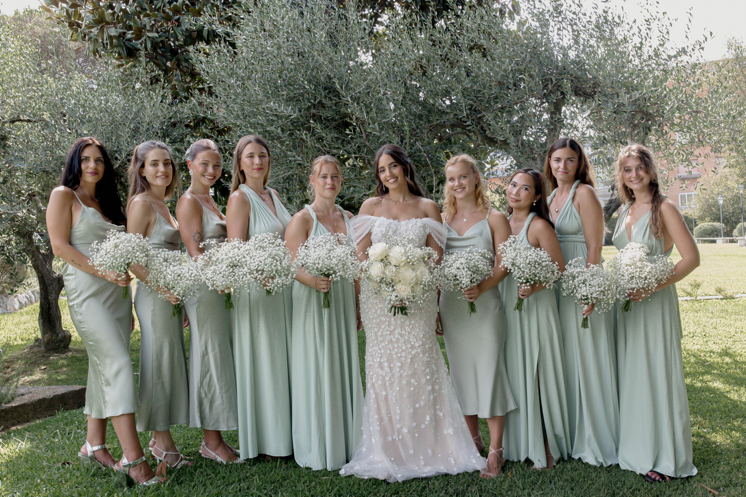 Unsere Hochzeit war über den Hügeln Roms! Mit Blick auf die Stadt, jeder war ausgelassen, da ja zusätzlich auch das Urlaubsfeeling dabei war und es war ein Traum aus Salbeigrün und den antiken Farben Roms. Es war eine sehr emotionale Hochzeit, jeder unserer Gäste hat einen persönlichen Brief von uns erhalten. Es war die perfekte Mischung zwischen Emotionen und Partystimmung mit all unseren Liebsten.
