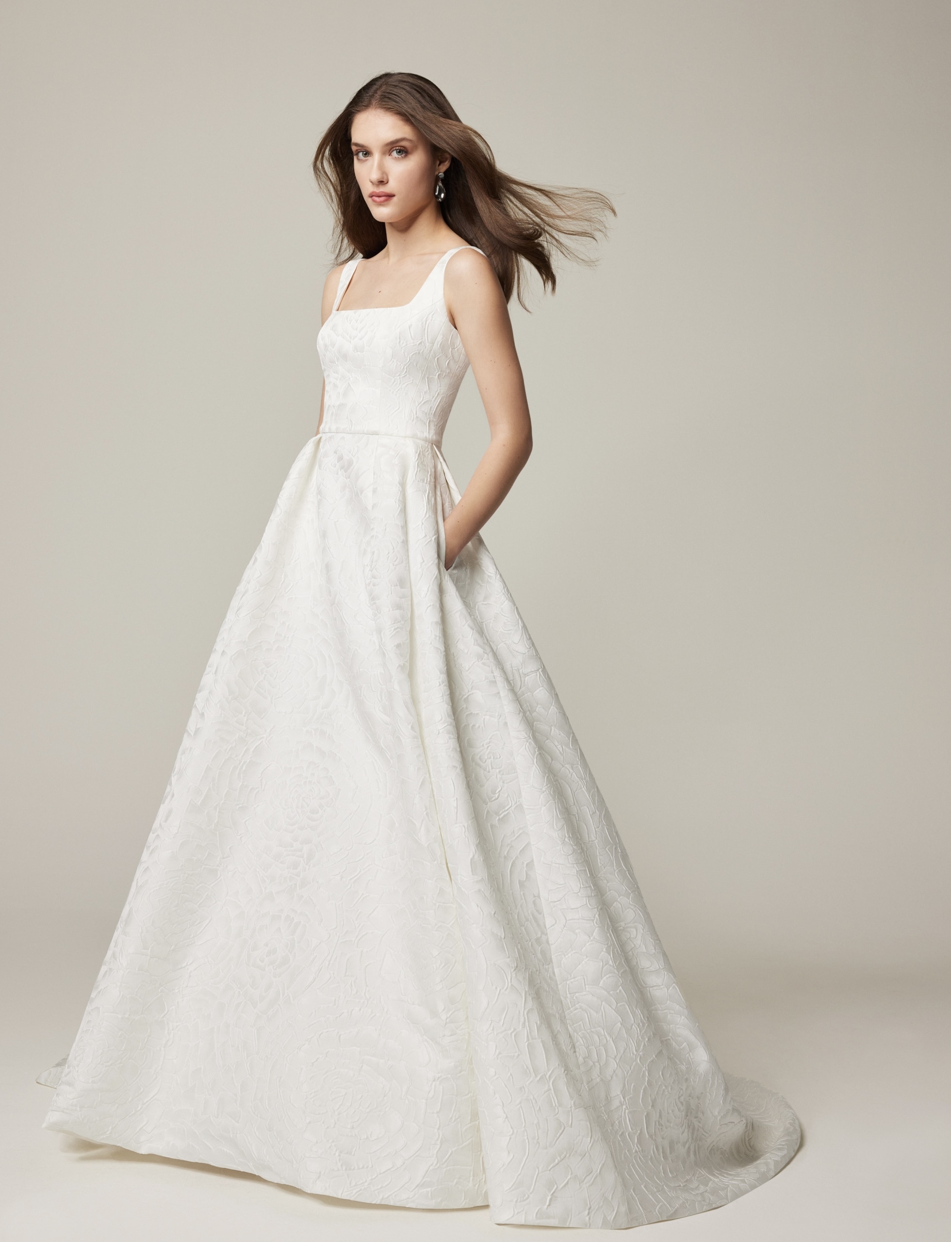 Klassischer und eleganter A-Linien Look in Satin (kann auch verbindlich im abgebildeten Brocade Stoff bestellt werden)