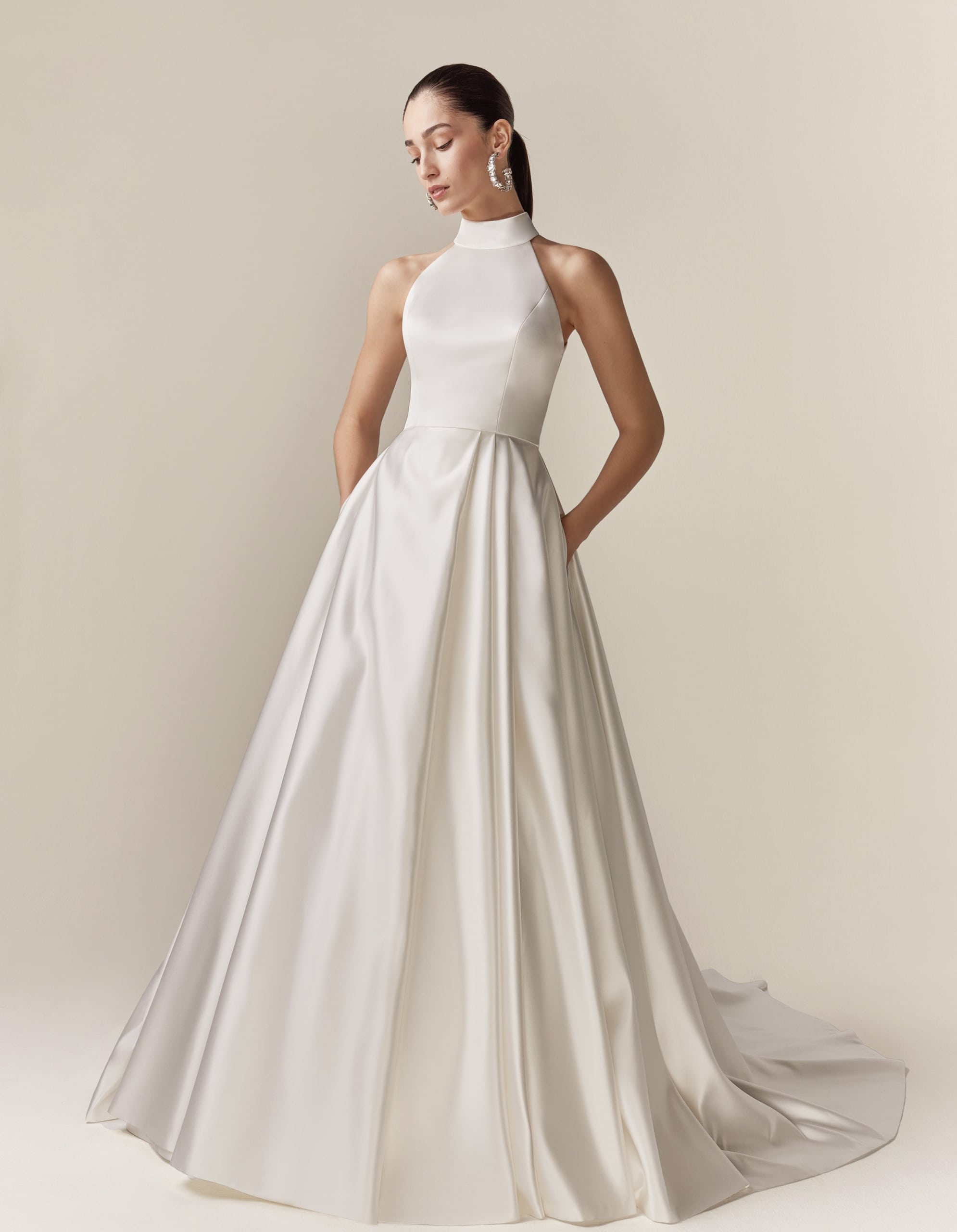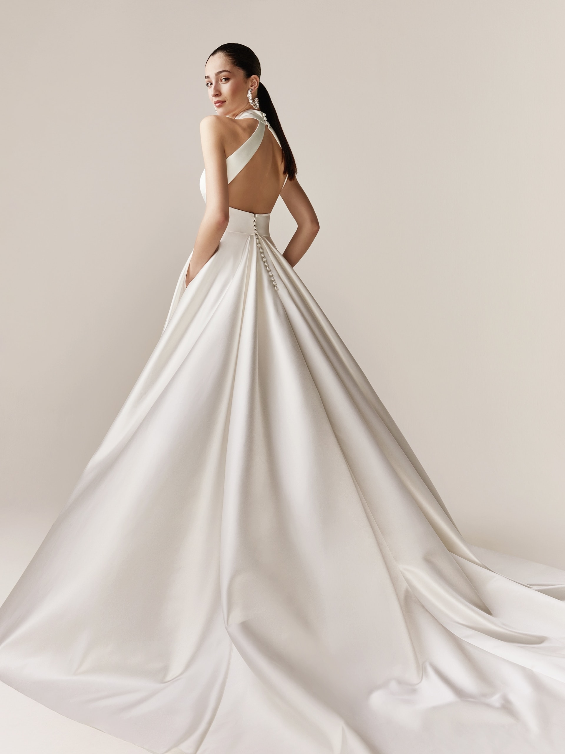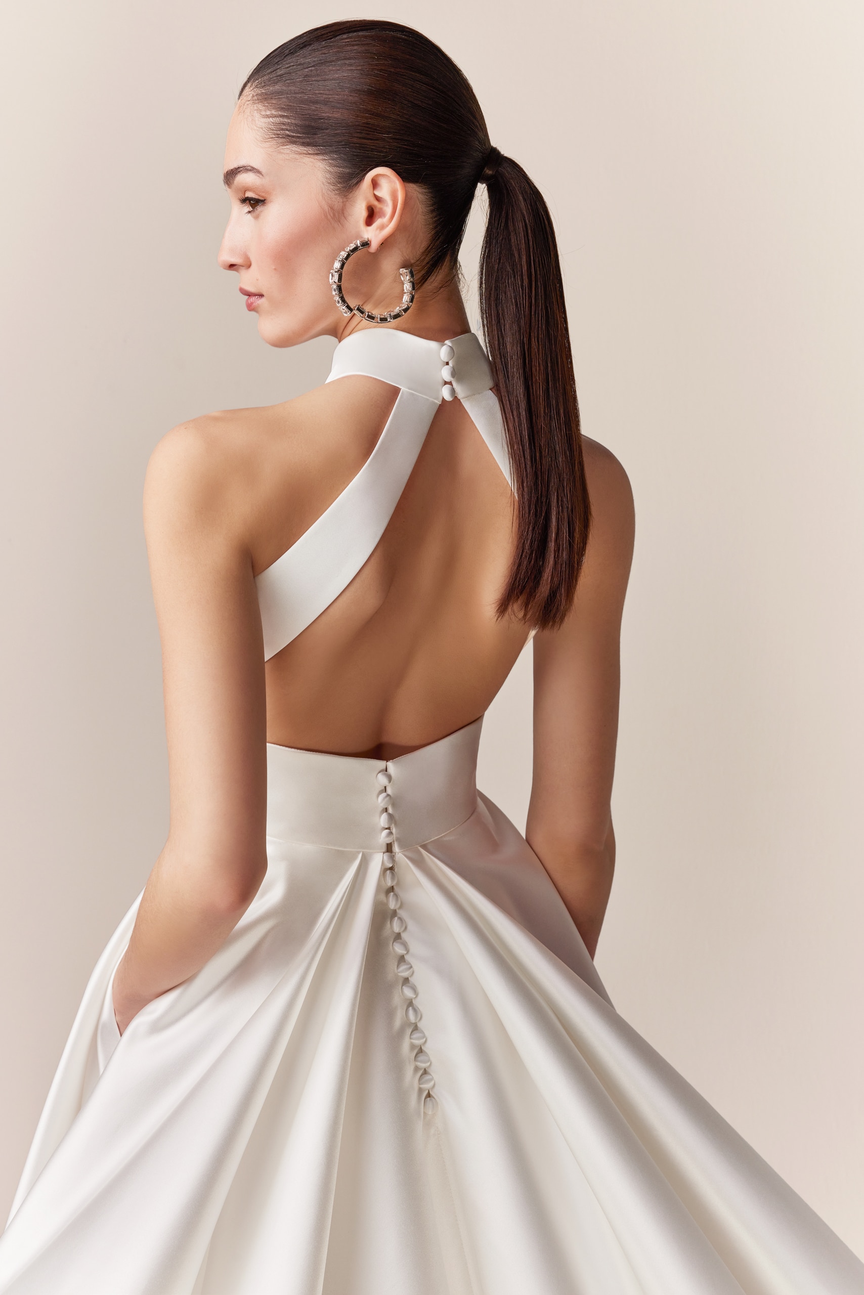 Ausgestelltes Neckholder A-Linien Kleid mit extravagantem Rücken in Satin