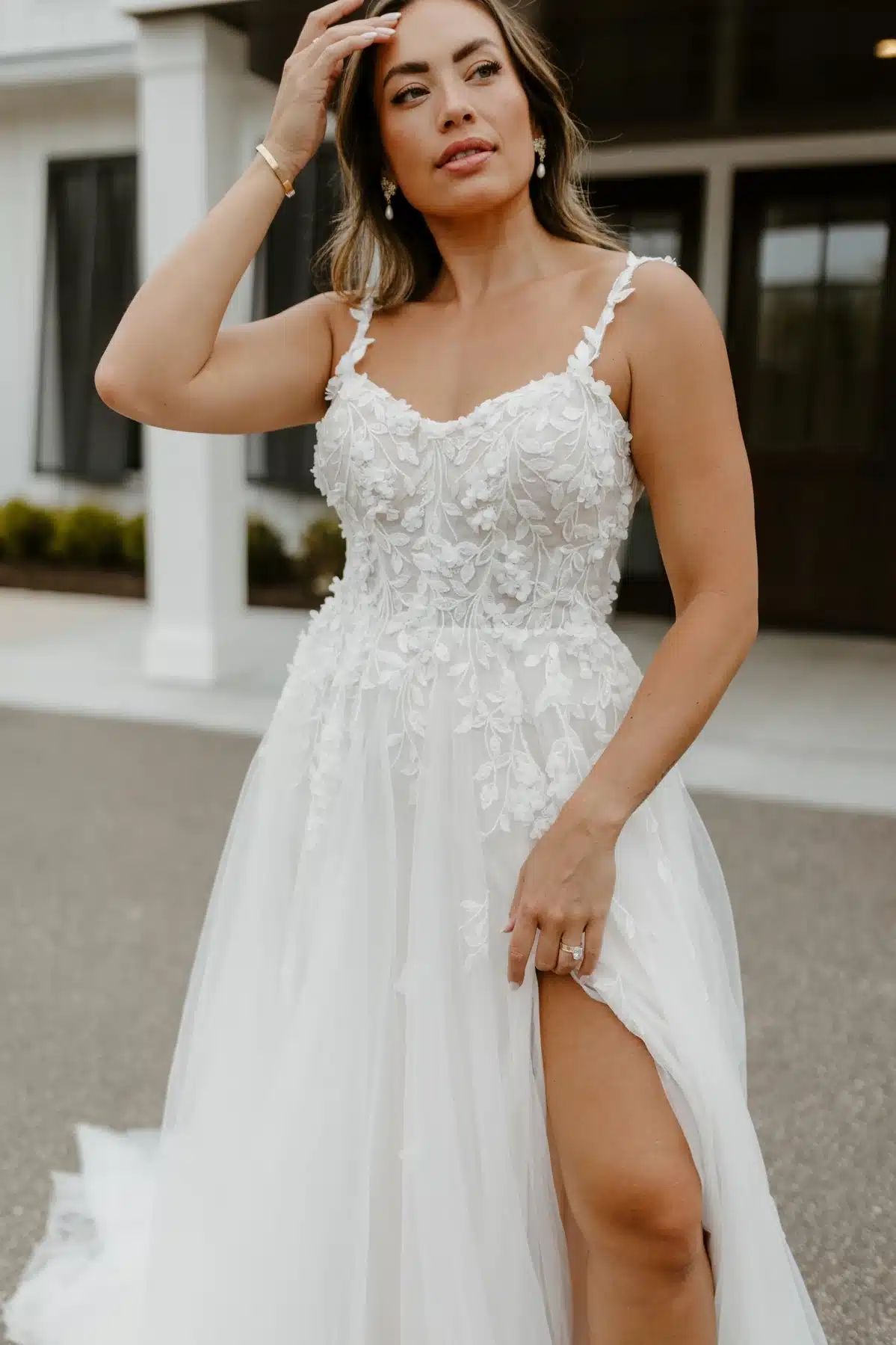 * Es handelt sich hierbei um die Größe unserer Musterkleider. Neubestellungen erfolgen in der Größe deiner Wahl. Bitte beachte zudem, dass einige Brautkleider internationaler Designer kleiner als die üblichen Konfektionsgrößen ausfallen. Falls du ein reduziertes Musterkleid kaufen möchtest, beachte bitte, dass diese schon mehrmals anprobiert wurden und daher Mängel und Flecken aufweisen können.