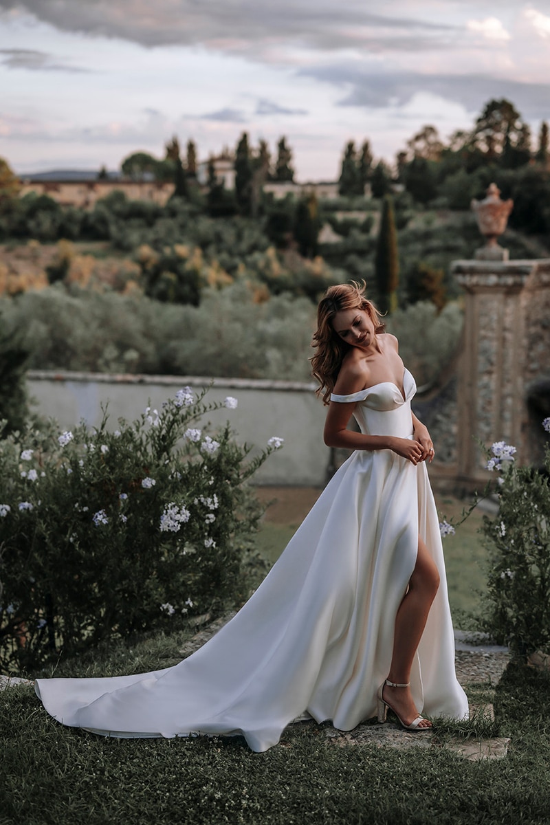 * Es handelt sich hierbei um die Größe unserer Musterkleider. Neubestellungen erfolgen in der Größe deiner Wahl. Bitte beachte zudem, dass einige Brautkleider internationaler Designer kleiner als die üblichen Konfektionsgrößen ausfallen. Falls du ein reduziertes Musterkleid kaufen möchtest, beachte bitte, dass diese schon mehrmals anprobiert wurden und daher Mängel und Flecken aufweisen können.