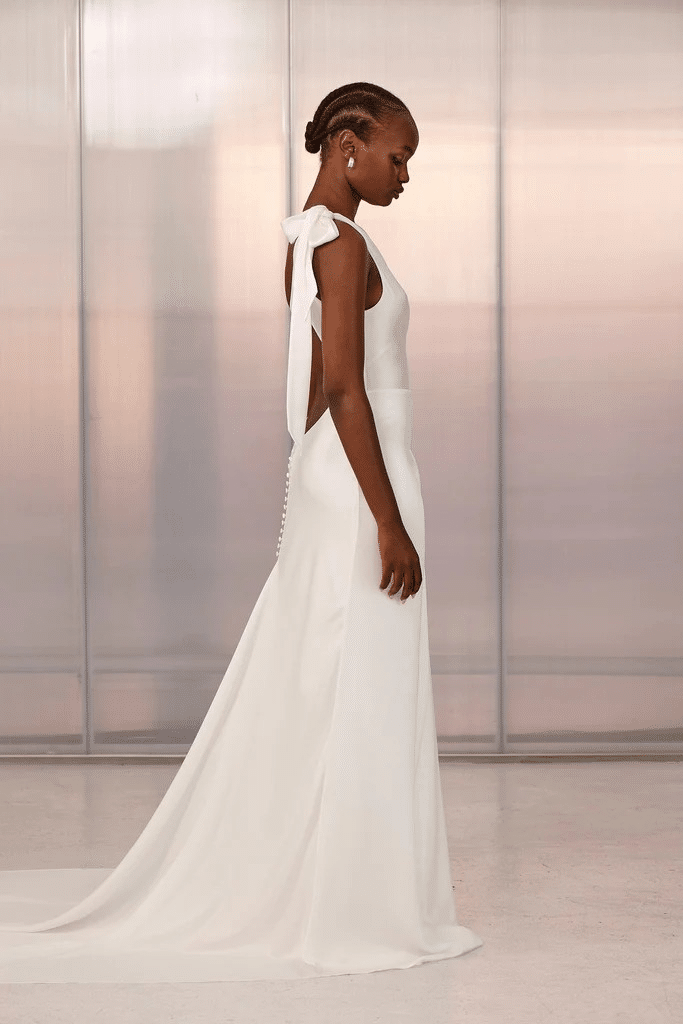 Aire ist die Dualität von entspannter Eleganz und Haltung, die perfekte Wahl für die ätherische Braut. Hinterlasse einen bleibenden Eindruck mit Knopfdetails, die die Kurve des Rückens betonen, und einem Seitenschlitz, der das Bein verlängert. Aire ist ein einschulteriges Hochzeitskleid, das sich mühelos drapieren lässt, mit doppellagigem Satin, der ein luxuriöses, glattes Finish hinterlässt.