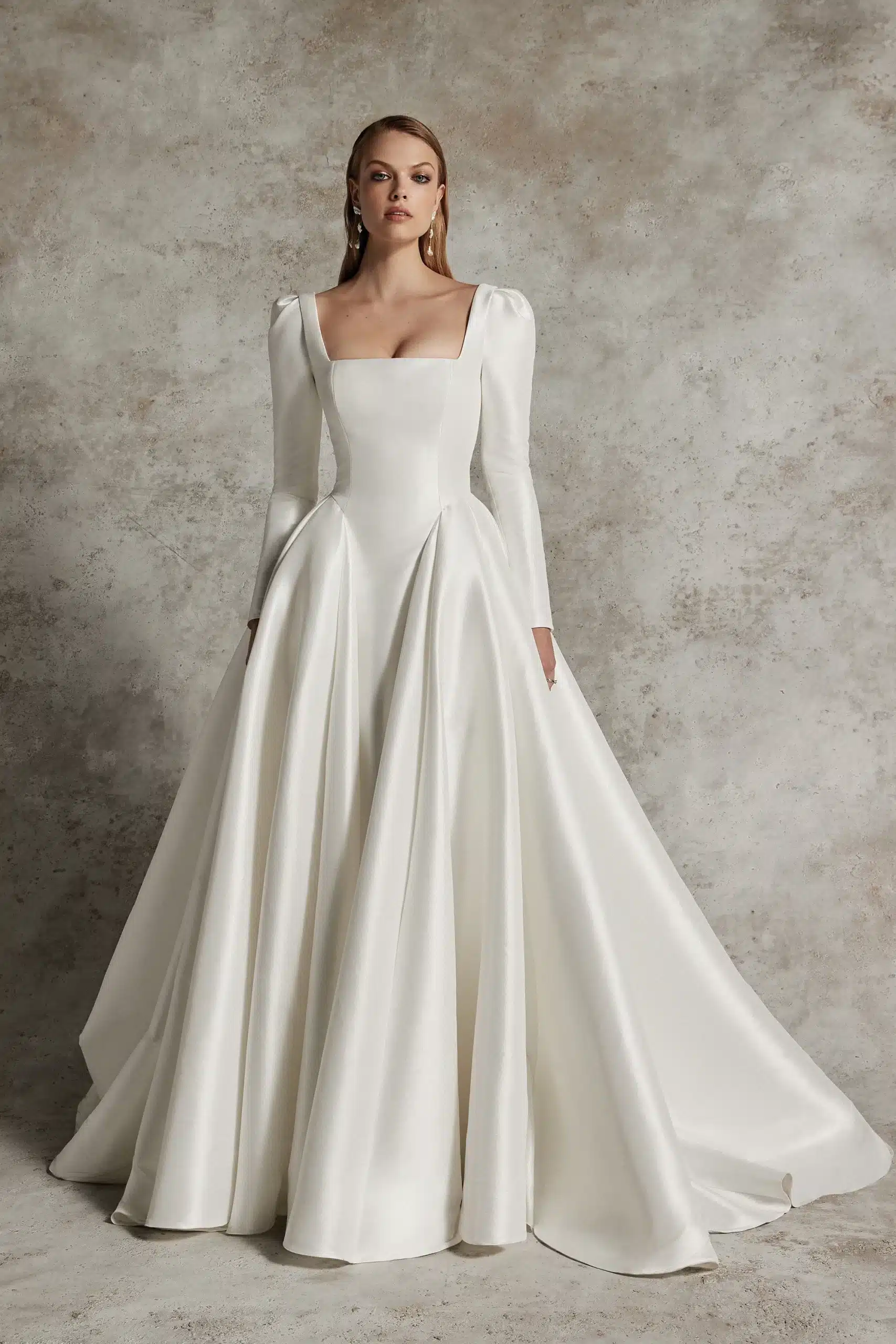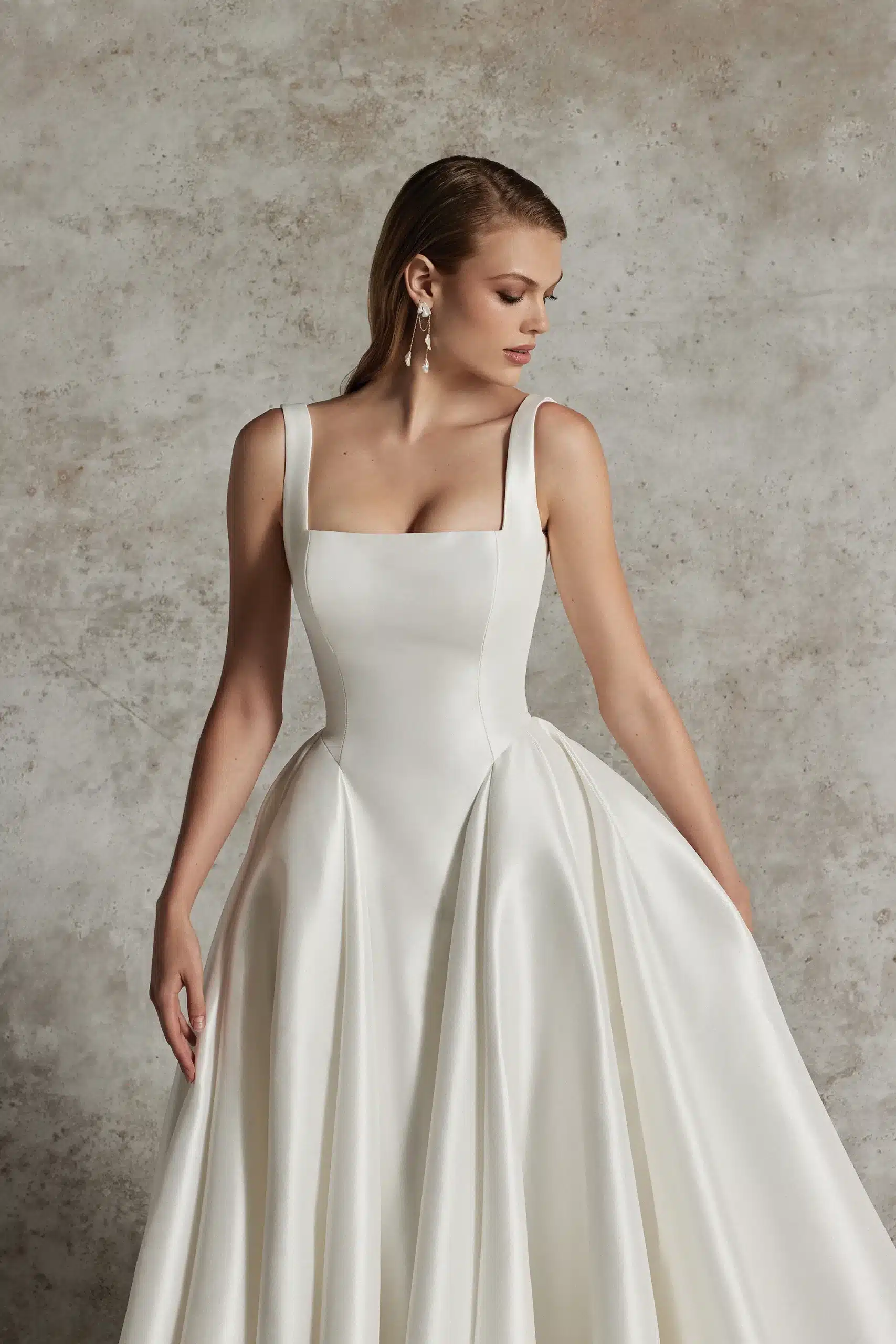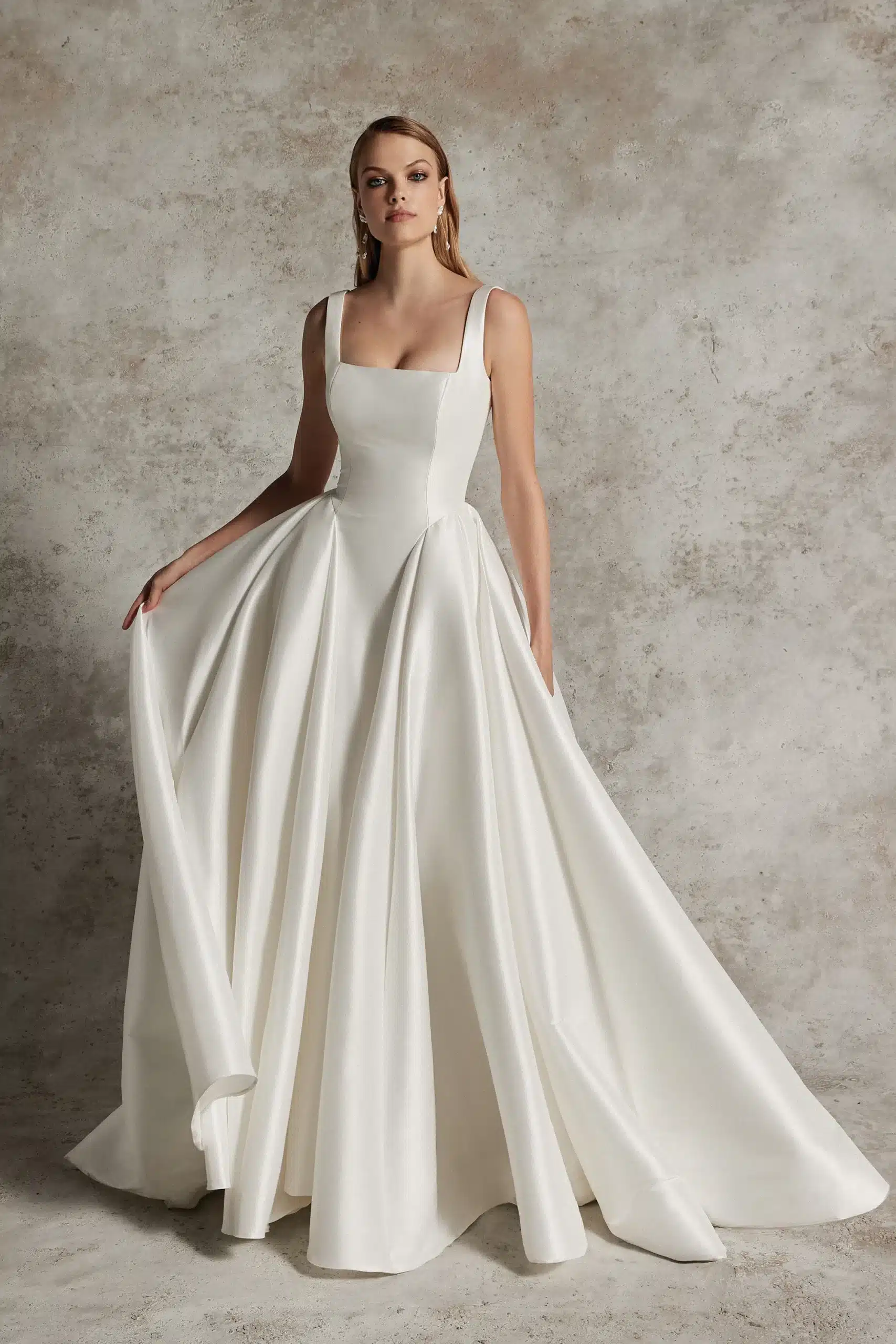 Ballkleid mit quadratischem Ausschnitt, Couture-Nähten und Taschen