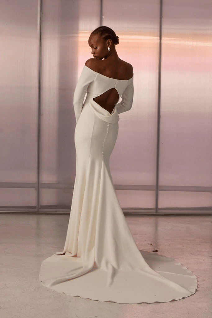 Entdecke den mühelosen Charme von Deia, der bisher meistgefragten Silhouette von GLL. Mit butterweichem Crêpe und einer modernen Silhouette ist Deia das perfekte Kleid für die Braut, die einen nuancierten Ansatz für ihren Brautlook sucht. Deia wurde mit eingebauter Shapewear entworfen, um die Silhouette zu formen und die Kurven zu akzentuieren. Dieses schulterfreie Hochzeitskleid ist für alle Oberweiten geeignet und zeichnet sich durch konturierende Linien aus, die den Körper verlängern, sowie durch einen eleganten Ärmel und einen offenen Rücken.
