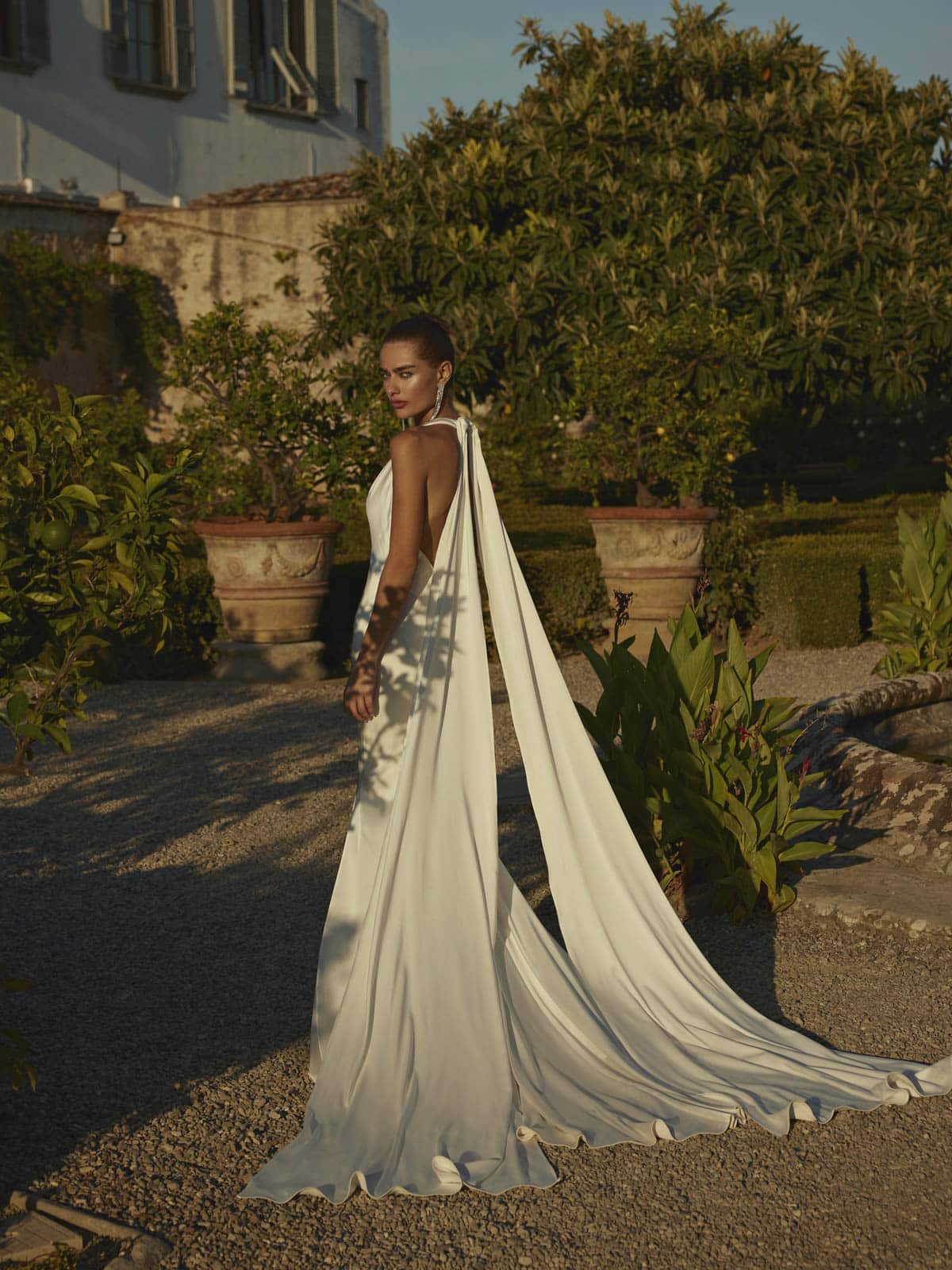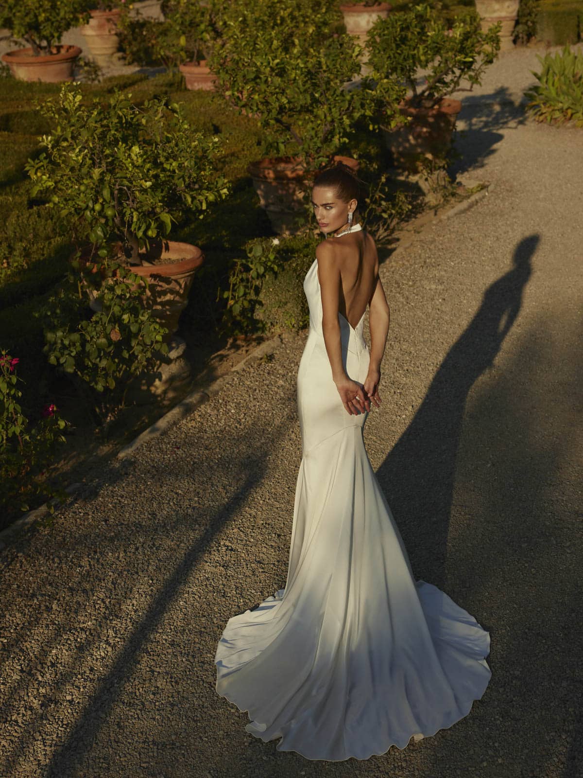Dwyn ist ein sinnliches Kleid aus Stretch-Satin, das für die elegante Braut entworfen wurde. Der Neckholder-Ausschnitt mit tiefem V-Ausschnitt verleiht einen Hauch von Raffinesse. Das Kleid ist mit einem abnehmbaren Schal versehen und bietet Vielseitigkeit und Dramatik. Dieses Kleid ist auch ohne den abnehmbaren Schal erhältlich – Dwyn-D.