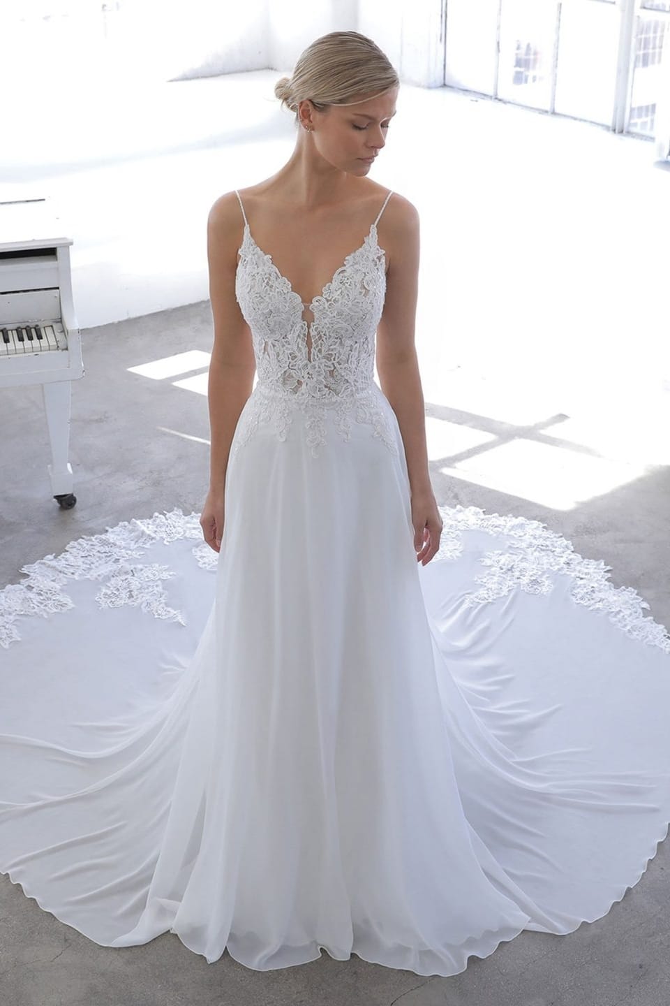 * Es handelt sich hierbei um die Größe unserer Musterkleider. Neubestellungen erfolgen in der Größe deiner Wahl. Bitte beachte zudem, dass einige Brautkleider internationaler Designer kleiner als die üblichen Konfektionsgrößen ausfallen. Falls du ein reduziertes Musterkleid kaufen möchtest, beachte bitte, dass diese schon mehrmals anprobiert wurden und daher Mängel und Flecken aufweisen können.