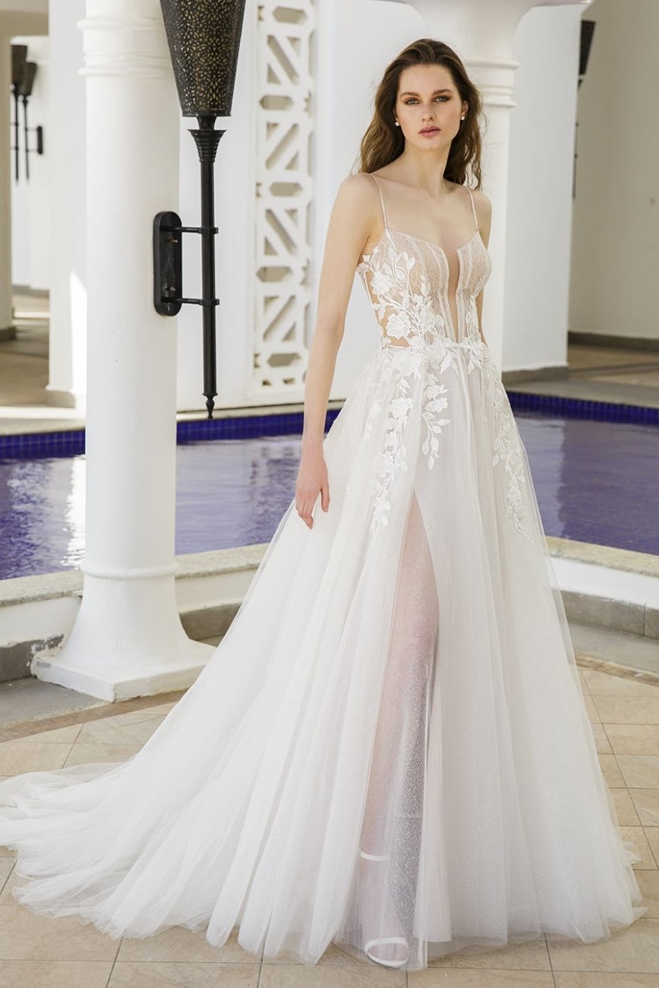 * Es handelt sich hierbei um die Größe unserer Musterkleider. Neubestellungen erfolgen in der Größe deiner Wahl. Bitte beachte zudem, dass einige Brautkleider internationaler Designer kleiner als die üblichen Konfektionsgrößen ausfallen. Falls du ein reduziertes Musterkleid kaufen möchtest, beachte bitte, dass diese schon mehrmals anprobiert wurden und daher Mängel und Flecken aufweisen können.