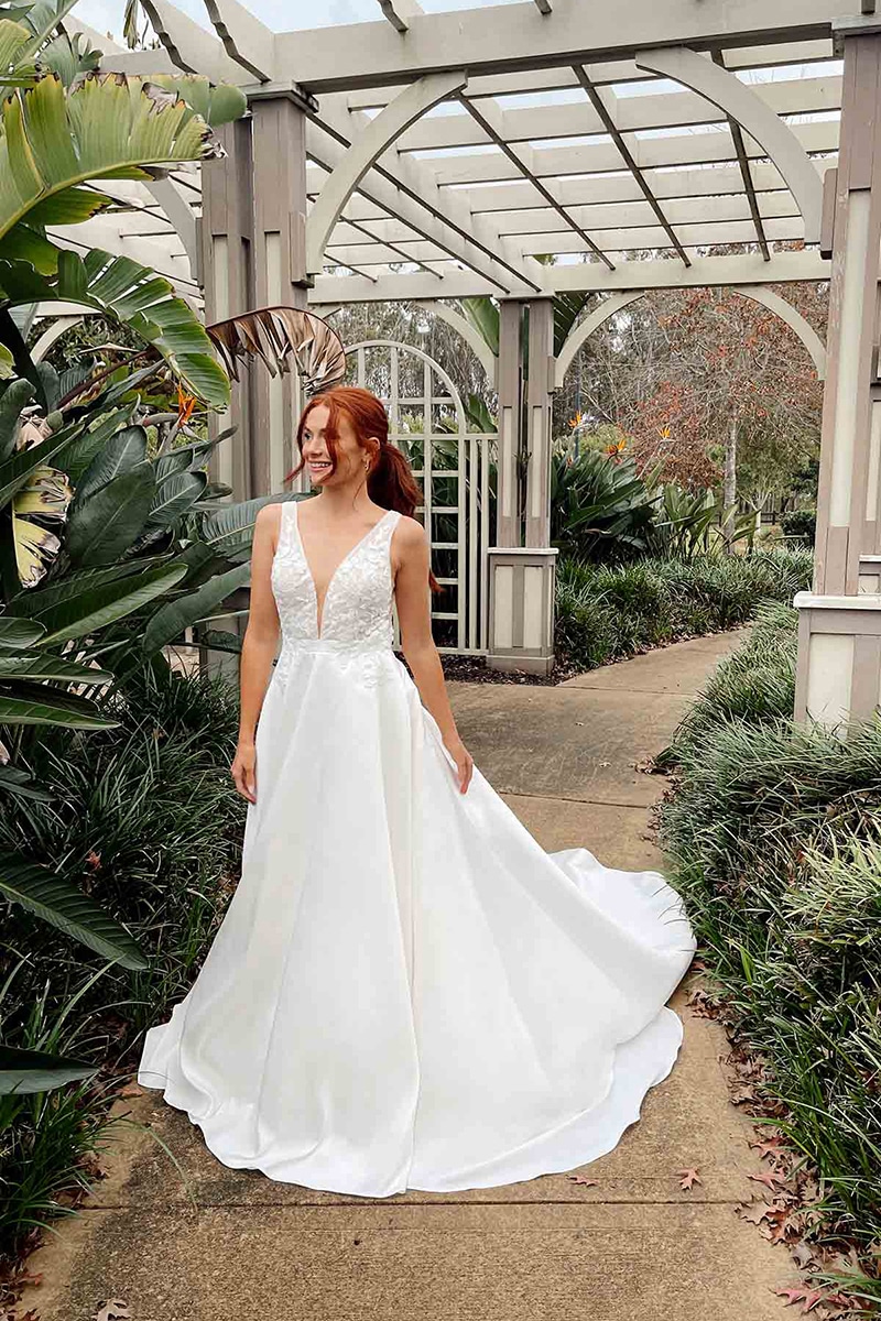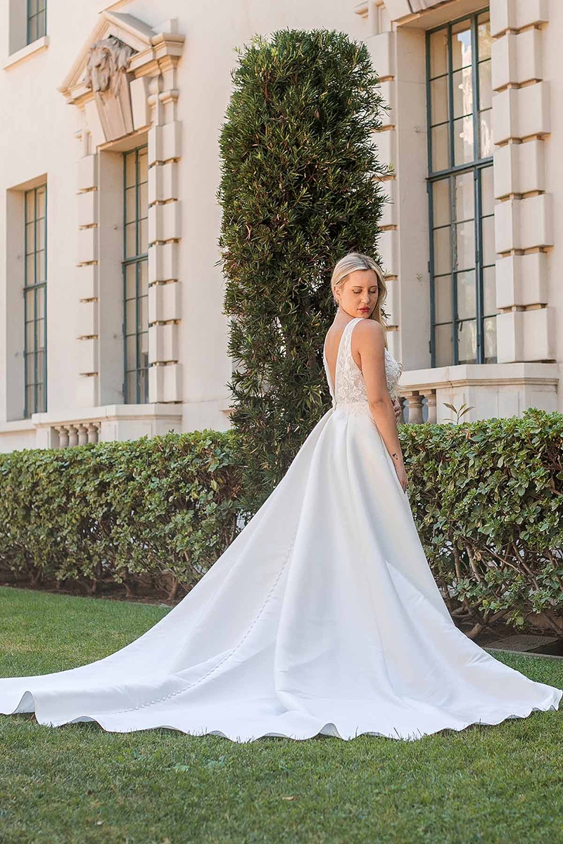 * Es handelt sich hierbei um die Größe unserer Musterkleider. Neubestellungen erfolgen in der Größe deiner Wahl. Bitte beachte zudem, dass einige Brautkleider internationaler Designer kleiner als die üblichen Konfektionsgrößen ausfallen. Falls du ein reduziertes Musterkleid kaufen möchtest, beachte bitte, dass diese schon mehrmals anprobiert wurden und daher Mängel und Flecken aufweisen können.