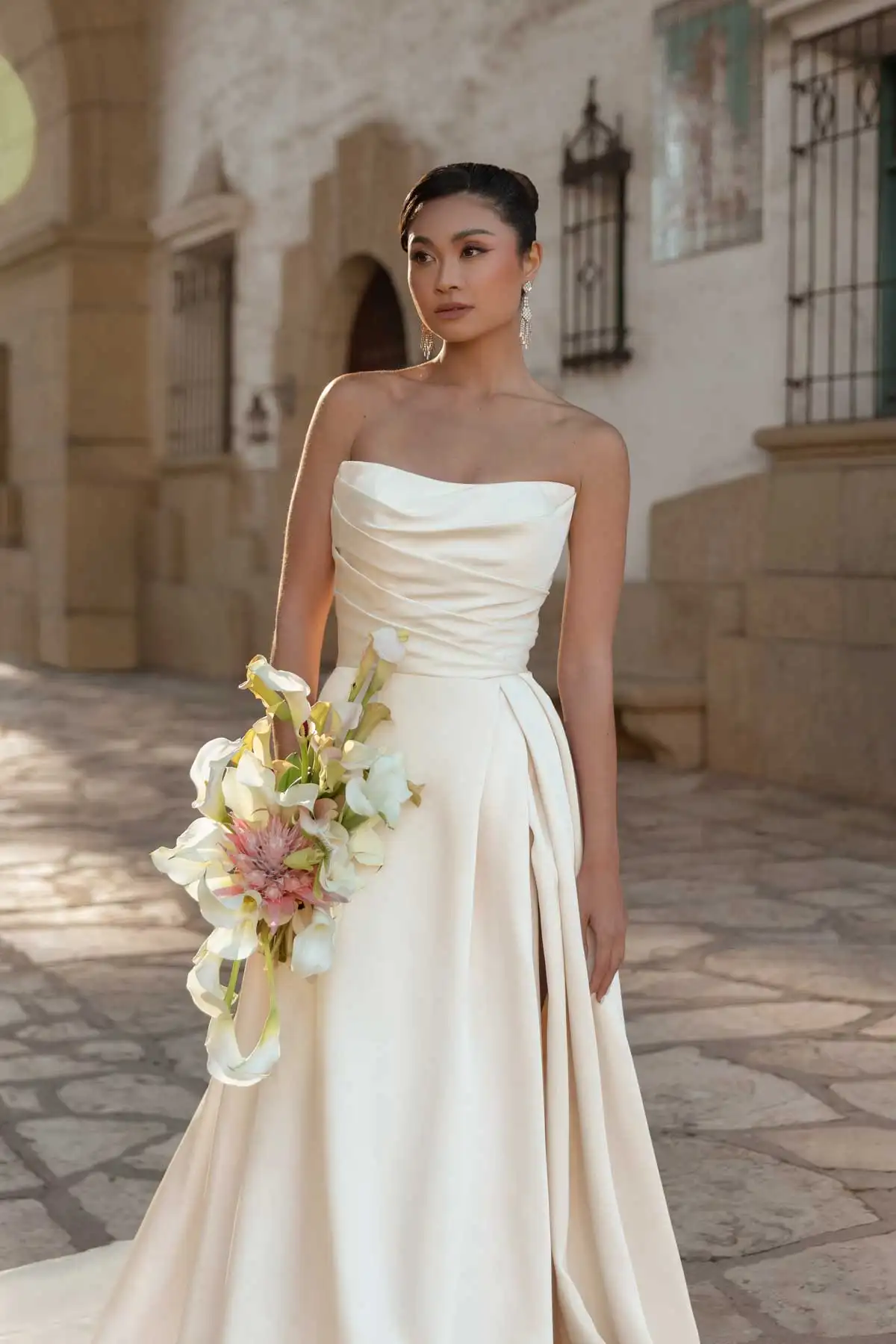 * Es handelt sich hierbei um die Größe unserer Musterkleider. Neubestellungen erfolgen in der Größe deiner Wahl. Bitte beachte zudem, dass einige Brautkleider internationaler Designer kleiner als die üblichen Konfektionsgrößen ausfallen. Falls du ein reduziertes Musterkleid kaufen möchtest, beachte bitte, dass diese schon mehrmals anprobiert wurden und daher Mängel und Flecken aufweisen können.