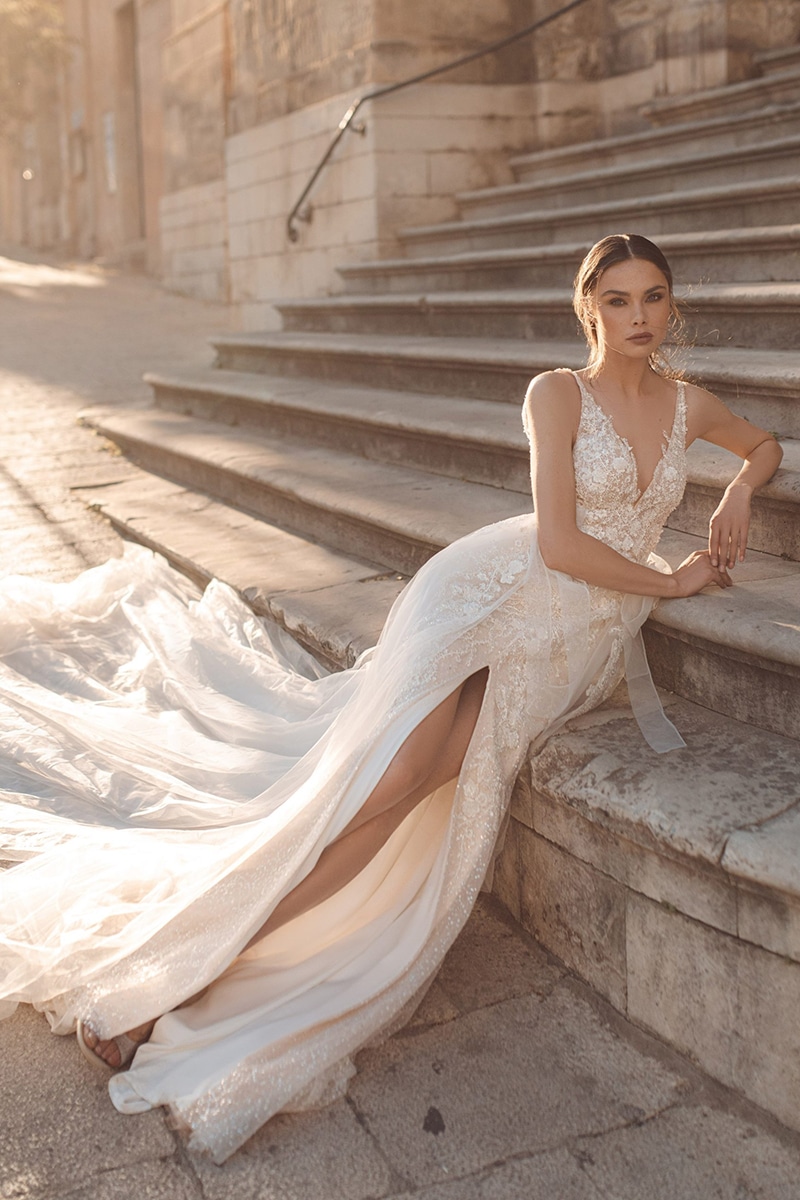 * Es handelt sich hierbei um die Größe unserer Musterkleider. Neubestellungen erfolgen in der Größe deiner Wahl. Bitte beachte zudem, dass einige Brautkleider internationaler Designer kleiner als die üblichen Konfektionsgrößen ausfallen. Falls du ein reduziertes Musterkleid kaufen möchtest, beachte bitte, dass diese schon mehrmals anprobiert wurden und daher Mängel und Flecken aufweisen können.