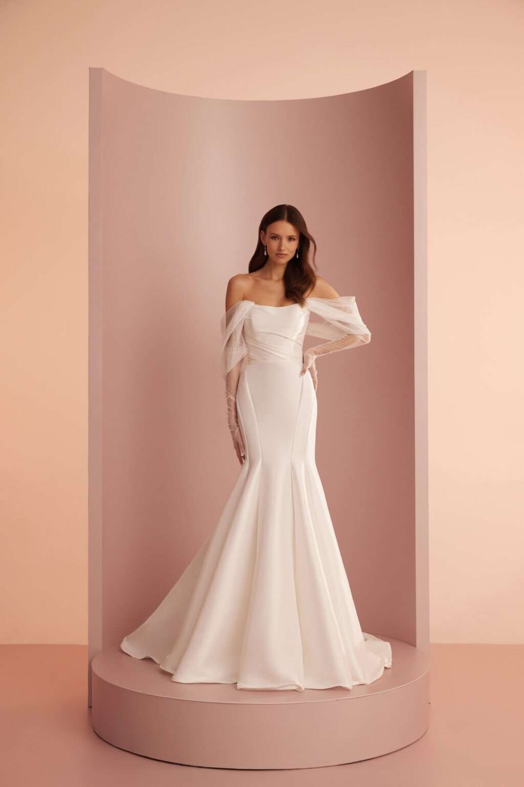 Meerjungenfrauen-Kleid mit U-Ausschnitt – bitte beachte, dass bei unserem Modell der Rock dem Kleid L412 entspricht