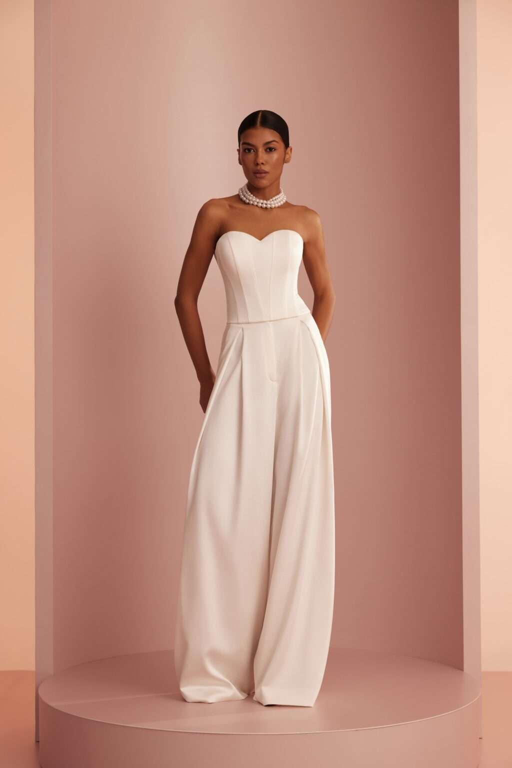 Erlebe die perfekte Mischung aus Eleganz und Moderne mit dem eng geschnittenen Brauttop. Der verführerische Herzausschnitt betont dein Dekolleté, während der Glossy Satin für einen luxuriösen Glanz sorgt. Dank der eingearbeiteten Stäbchen sitzt das trägerlose Top stets perfekt und formt eine wunderschöne Silhouette. Auch im Set erhältlich mit der dazu passenden Hose und Blazer.
