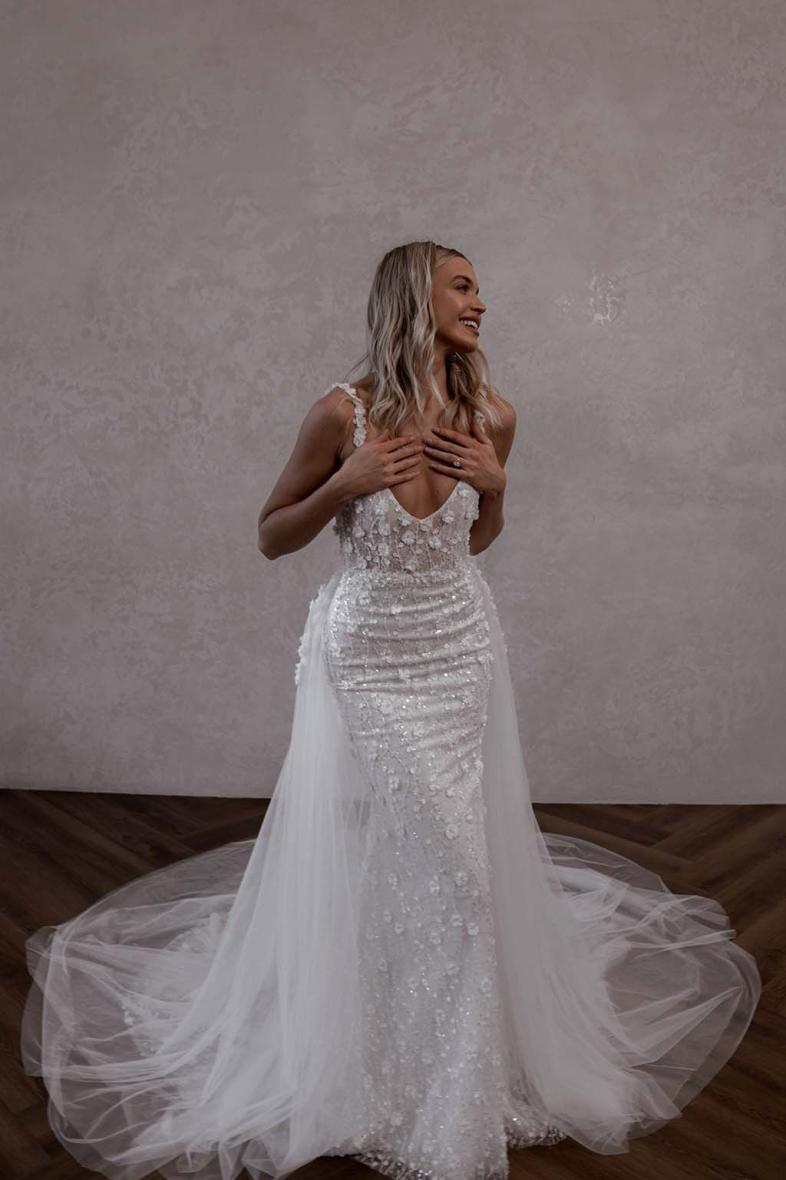 * Es handelt sich hierbei um die Größe unserer Musterkleider. Neubestellungen erfolgen in der Größe deiner Wahl. Bitte beachte zudem, dass einige Brautkleider internationaler Designer kleiner als die üblichen Konfektionsgrößen ausfallen. Falls du ein reduziertes Musterkleid kaufen möchtest, beachte bitte, dass diese schon mehrmals anprobiert wurden und daher Mängel und Flecken aufweisen können.