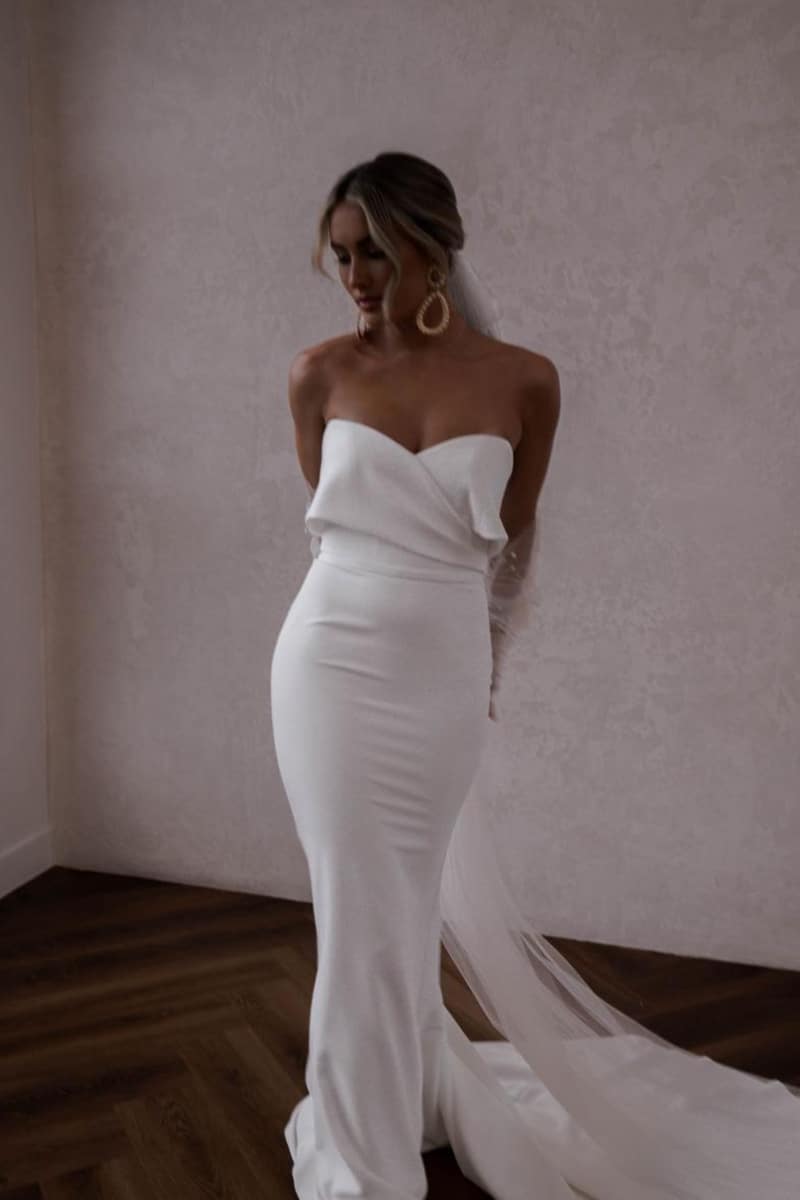 * Es handelt sich hierbei um die Größe unserer Musterkleider. Neubestellungen erfolgen in der Größe deiner Wahl. Bitte beachte zudem, dass einige Brautkleider internationaler Designer kleiner als die üblichen Konfektionsgrößen ausfallen. Falls du ein reduziertes Musterkleid kaufen möchtest, beachte bitte, dass diese schon mehrmals anprobiert wurden und daher Mängel und Flecken aufweisen können.