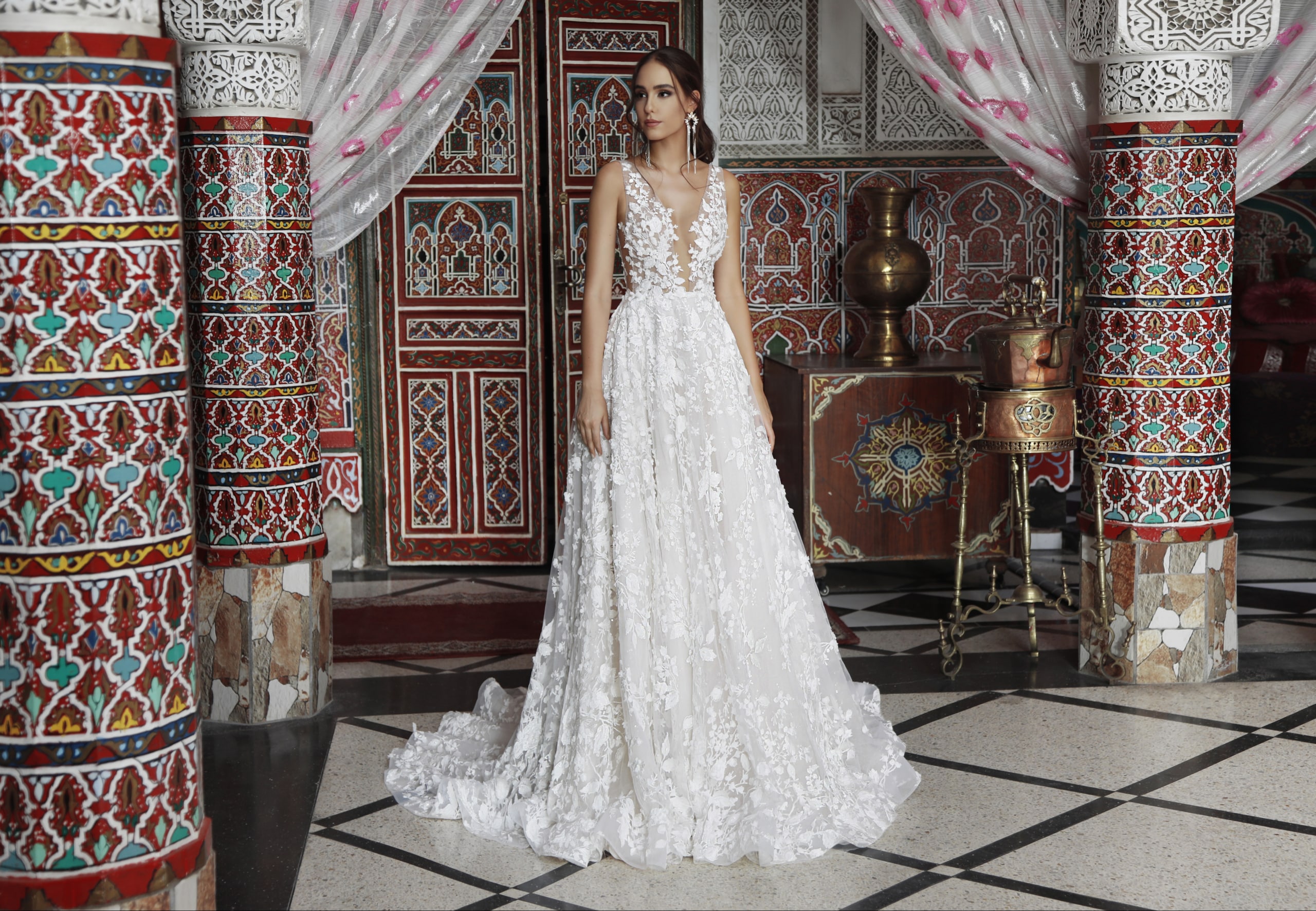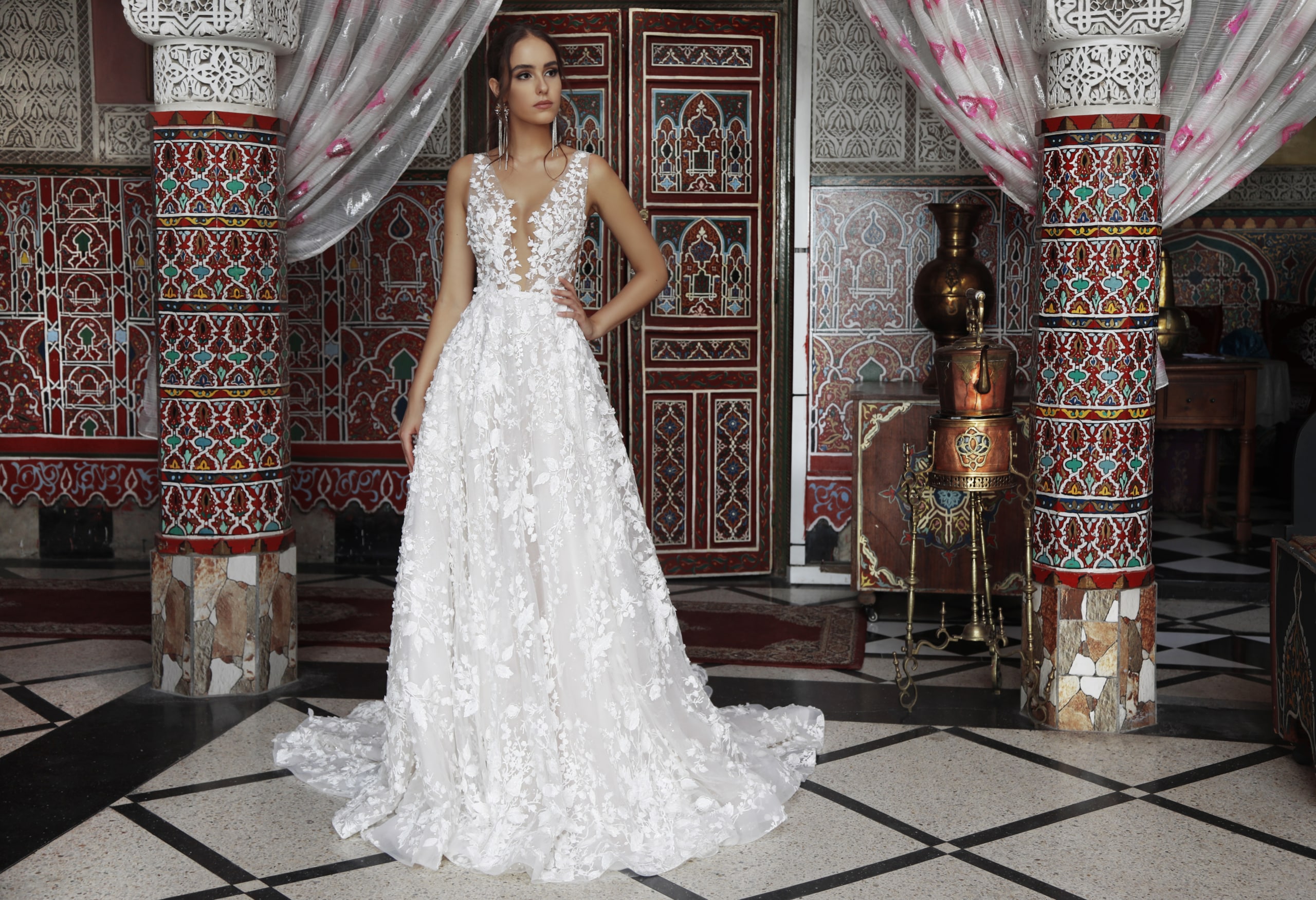 Die exquisite 3D-Spitze verleiht dem Kleid eine atemberaubende Tiefe und Eleganz, während der tiefe V-Ausschnitt einen Hauch von Sinnlichkeit und Anmut versprüht. Dieses Kleid ist die perfekte Wahl für die moderne Braut, die an ihrem großen Tag in zeitloser Schönheit erstrahlen möchte.
