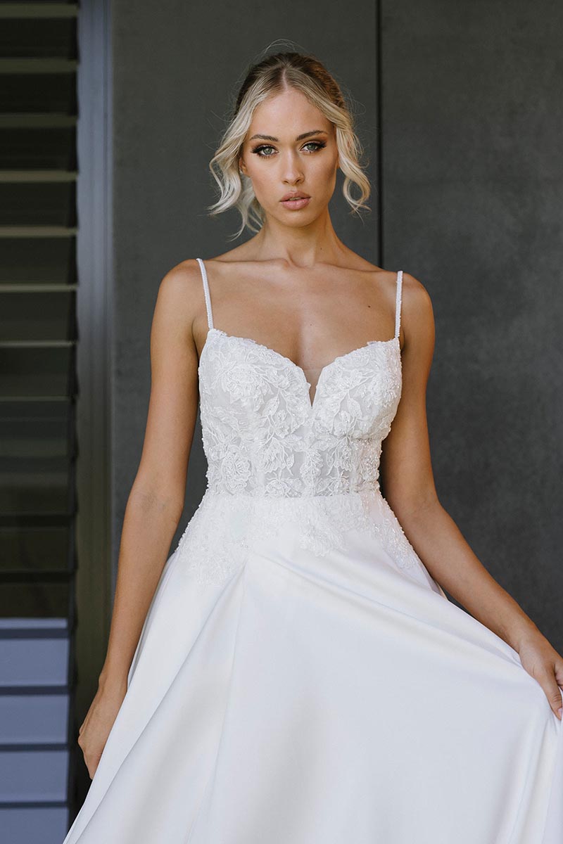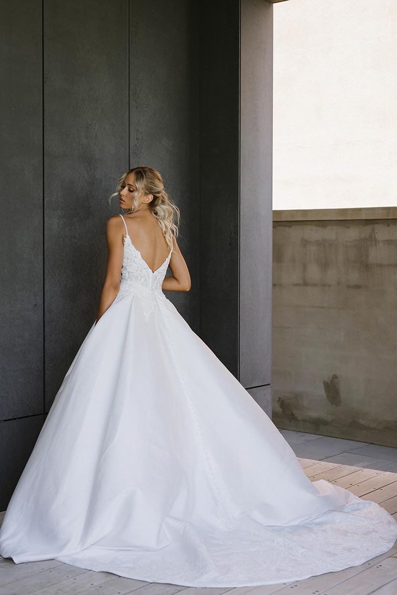 * Es handelt sich hierbei um die Größe unserer Musterkleider. Neubestellungen erfolgen in der Größe deiner Wahl. Bitte beachte zudem, dass einige Brautkleider internationaler Designer kleiner als die üblichen Konfektionsgrößen ausfallen. Falls du ein reduziertes Musterkleid kaufen möchtest, beachte bitte, dass diese schon mehrmals anprobiert wurden und daher Mängel und Flecken aufweisen können.