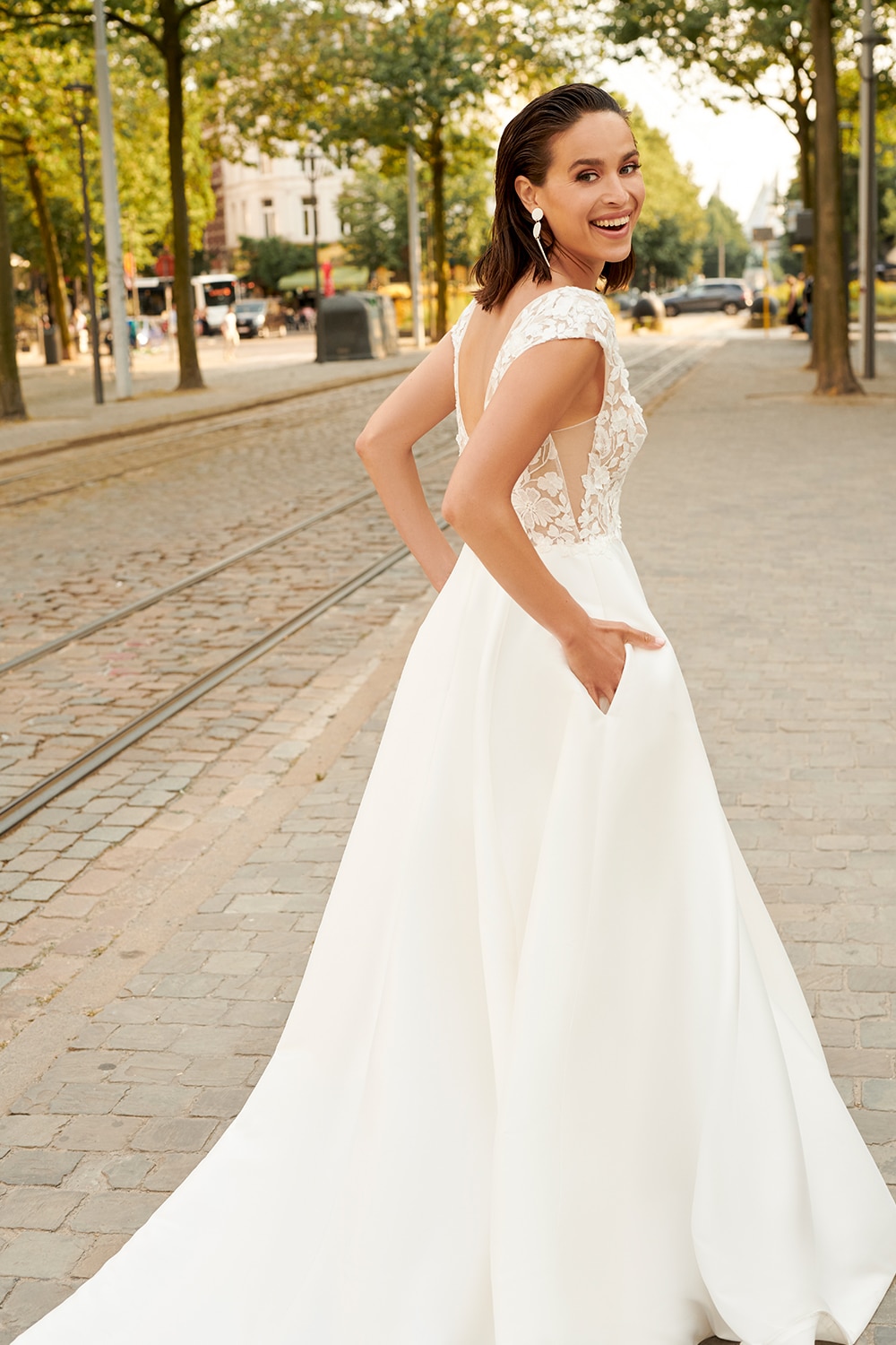 * Es handelt sich hierbei um die Größe unserer Musterkleider. Neubestellungen erfolgen in der Größe deiner Wahl. Bitte beachte zudem, dass einige Brautkleider internationaler Designer kleiner als die üblichen Konfektionsgrößen ausfallen. Falls du ein reduziertes Musterkleid kaufen möchtest, beachte bitte, dass diese schon mehrmals anprobiert wurden und daher Mängel und Flecken aufweisen können.