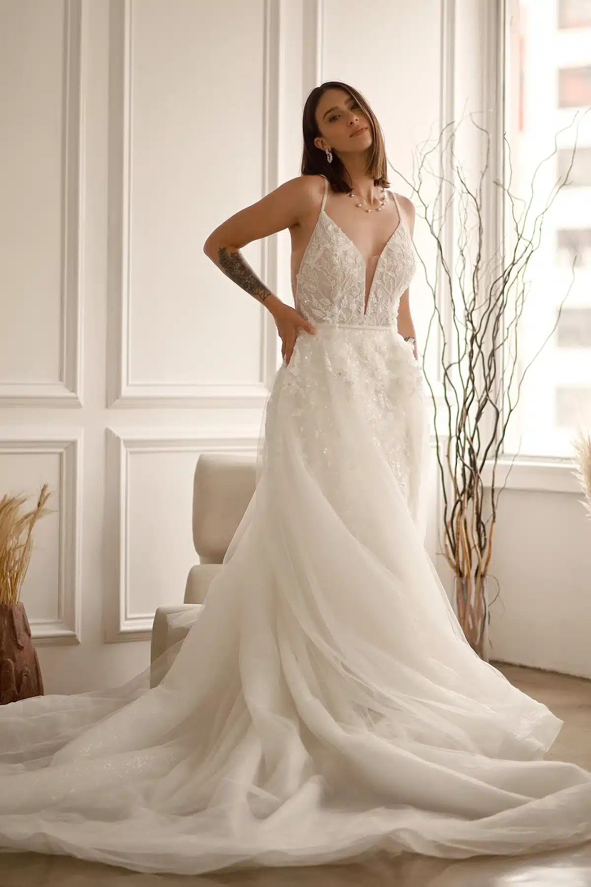* Es handelt sich hierbei um die Größe unserer Musterkleider. Neubestellungen erfolgen in der Größe deiner Wahl. Bitte beachte zudem, dass einige Brautkleider internationaler Designer kleiner als die üblichen Konfektionsgrößen ausfallen. Falls du ein reduziertes Musterkleid kaufen möchtest, beachte bitte, dass diese schon mehrmals anprobiert wurden und daher Mängel und Flecken aufweisen können.