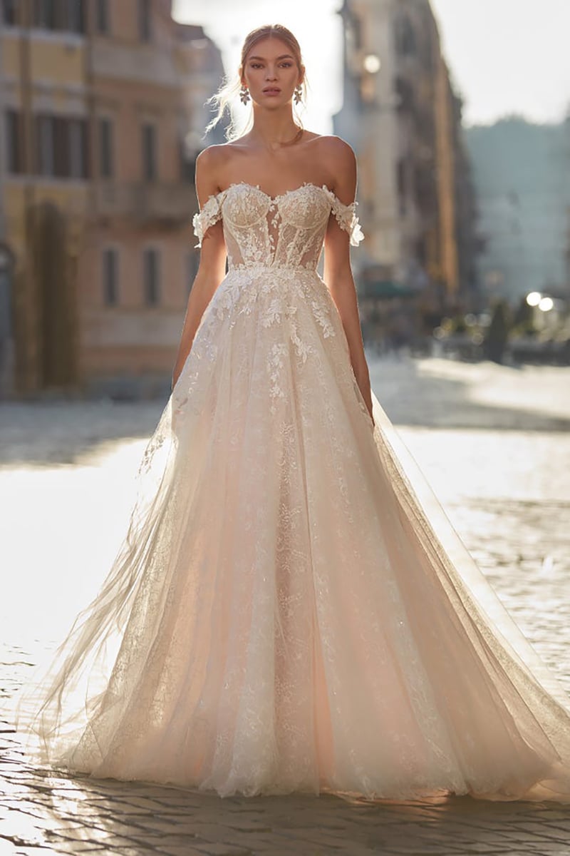 * Es handelt sich hierbei um die Größe unserer Musterkleider. Neubestellungen erfolgen in der Größe deiner Wahl. Bitte beachte zudem, dass einige Brautkleider internationaler Designer kleiner als die üblichen Konfektionsgrößen ausfallen. Falls du ein reduziertes Musterkleid kaufen möchtest, beachte bitte, dass diese schon mehrmals anprobiert wurden und daher Mängel und Flecken aufweisen können.