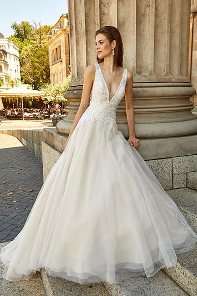 * Es handelt sich hierbei um die Größe unserer Musterkleider. Neubestellungen erfolgen in der Größe deiner Wahl. Bitte beachte zudem, dass einige Brautkleider internationaler Designer kleiner als die üblichen Konfektionsgrößen ausfallen. Falls du ein reduziertes Musterkleid kaufen möchtest, beachte bitte, dass diese schon mehrmals anprobiert wurden und daher Mängel und Flecken aufweisen können.