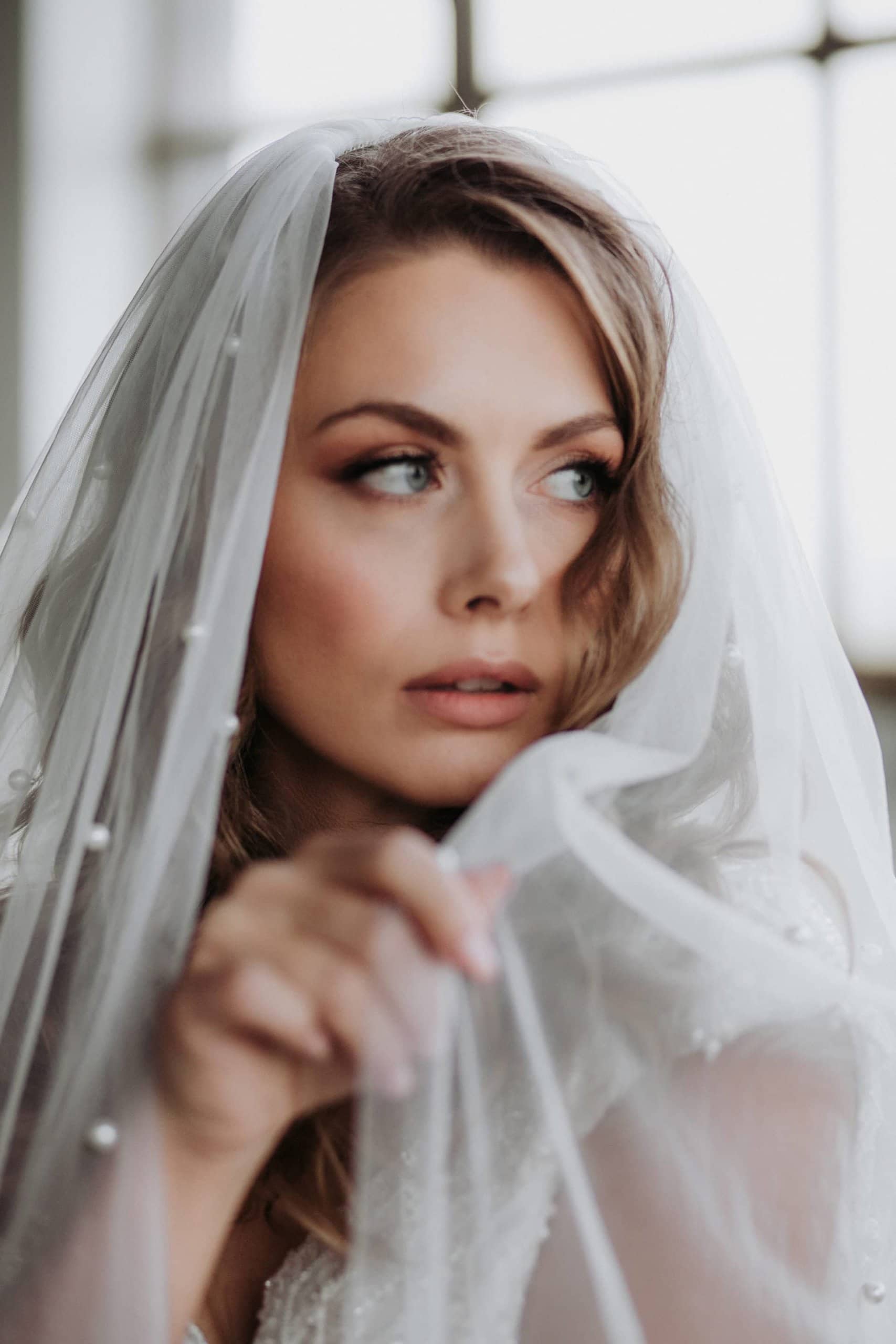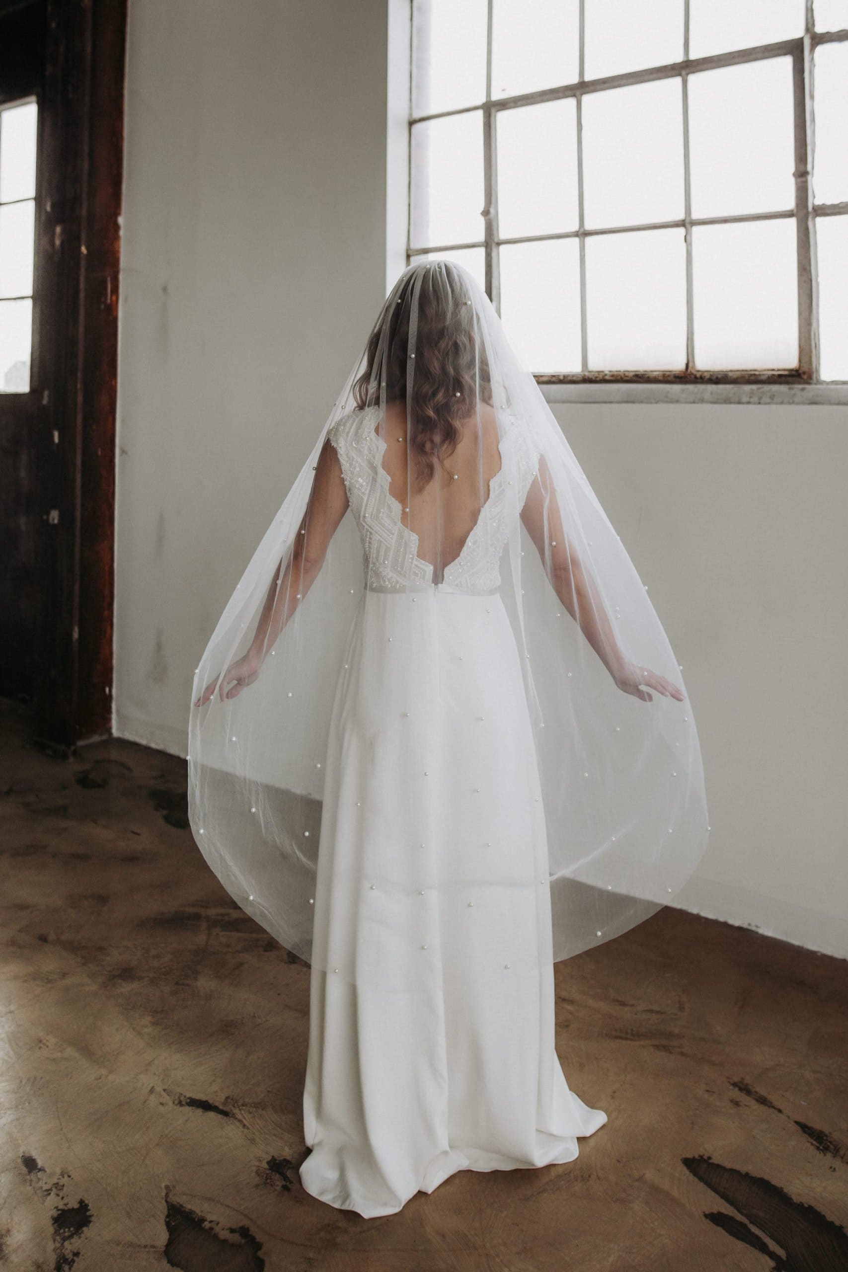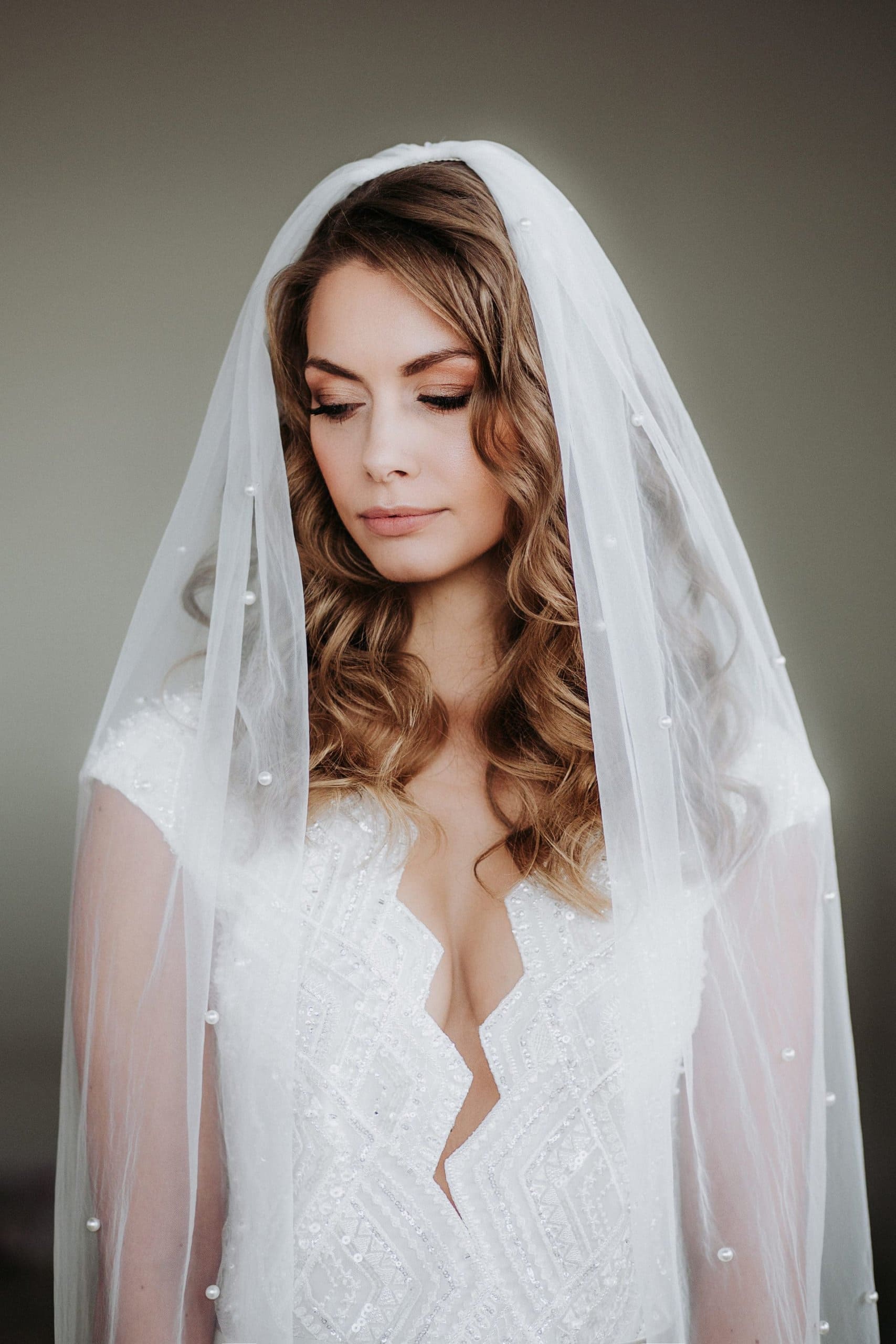 Brautschleier mit Perlen in der Farbe ivory aus Soft Tüll. Der Brautschleier besticht durch seinen Perlenbesatz, der sich über den gesamten Schleier zieht. Durch die geringen farblichen Unterschiede der einzelnen Komponenten ergibt sich im Gesamtbild jedoch ein dezentes und eher puristisches Design. Dies eröffnet dir viele Freiheiten bei der Wahl weiterer Accessoires und deinem Wunschoutfit.