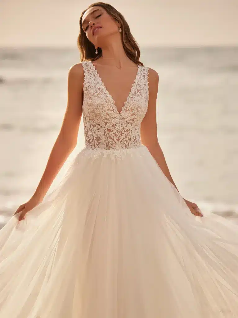 * Es handelt sich hierbei um die Größe unserer Musterkleider. Neubestellungen erfolgen in der Größe deiner Wahl. Bitte beachte zudem, dass einige Brautkleider internationaler Designer kleiner als die üblichen Konfektionsgrößen ausfallen. Falls du ein reduziertes Musterkleid kaufen möchtest, beachte bitte, dass diese schon mehrmals anprobiert wurden und daher Mängel und Flecken aufweisen können.