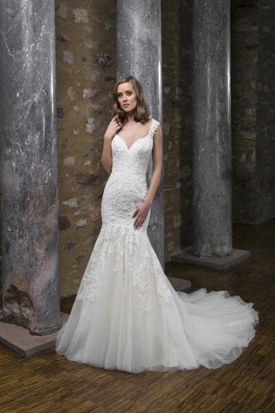 * Es handelt sich hierbei um die Größe unserer Musterkleider. Neubestellungen erfolgen in der Größe deiner Wahl. Bitte beachte zudem, dass einige Brautkleider internationaler Designer kleiner als die üblichen Konfektionsgrößen ausfallen. Falls du ein reduziertes Musterkleid kaufen möchtest, beachte bitte, dass diese schon mehrmals anprobiert wurden und daher Mängel und Flecken aufweisen können.