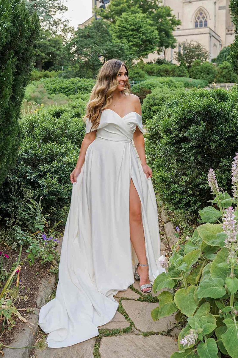 * Es handelt sich hierbei um die Größe unserer Musterkleider. Neubestellungen erfolgen in der Größe deiner Wahl. Bitte beachte zudem, dass einige Brautkleider internationaler Designer kleiner als die üblichen Konfektionsgrößen ausfallen. Falls du ein reduziertes Musterkleid kaufen möchtest, beachte bitte, dass diese schon mehrmals anprobiert wurden und daher Mängel und Flecken aufweisen können.