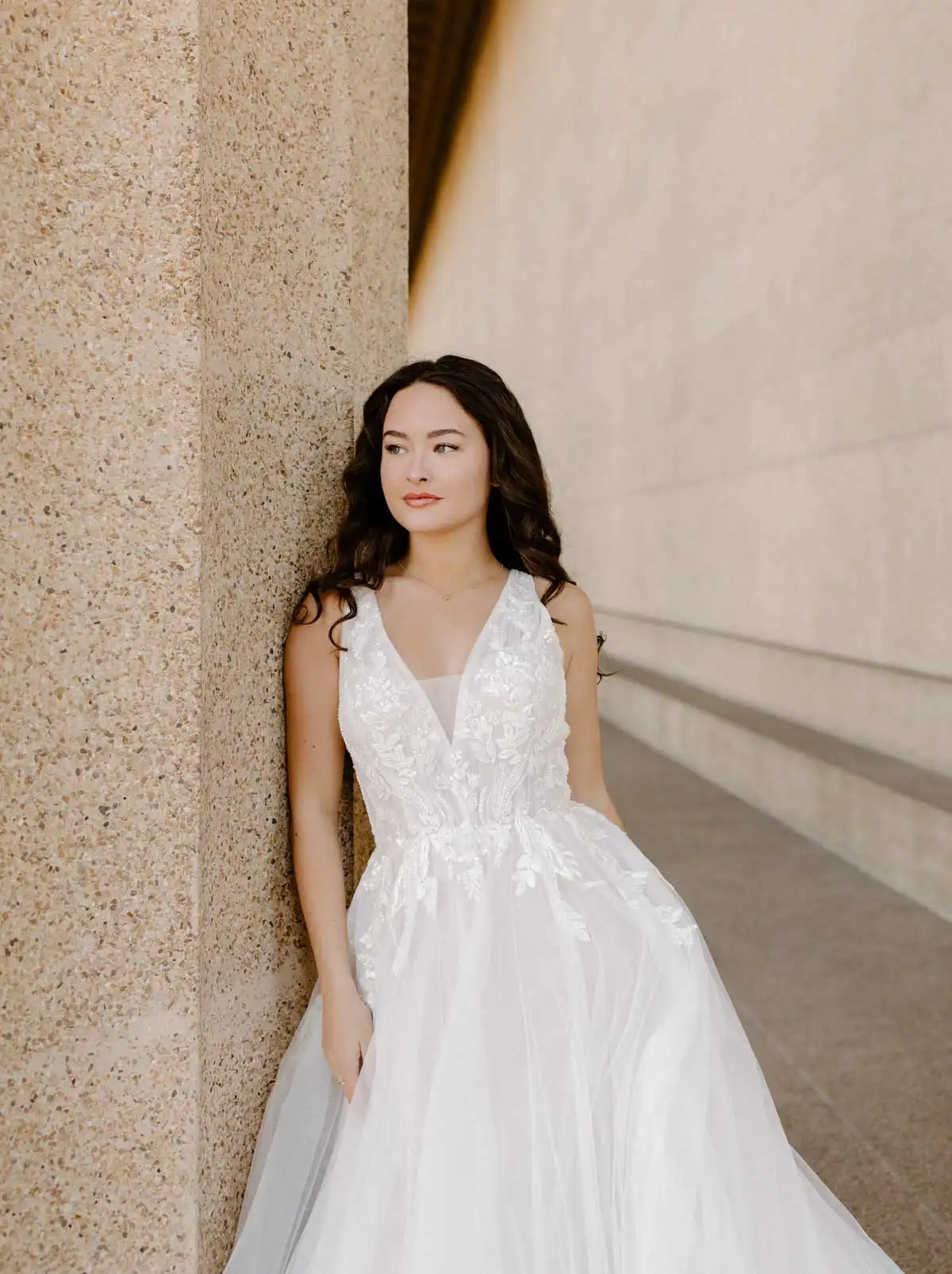 * Es handelt sich hierbei um die Größe unserer Musterkleider. Neubestellungen erfolgen in der Größe deiner Wahl. Bitte beachte zudem, dass einige Brautkleider internationaler Designer kleiner als die üblichen Konfektionsgrößen ausfallen. Falls du ein reduziertes Musterkleid kaufen möchtest, beachte bitte, dass diese schon mehrmals anprobiert wurden und daher Mängel und Flecken aufweisen können.