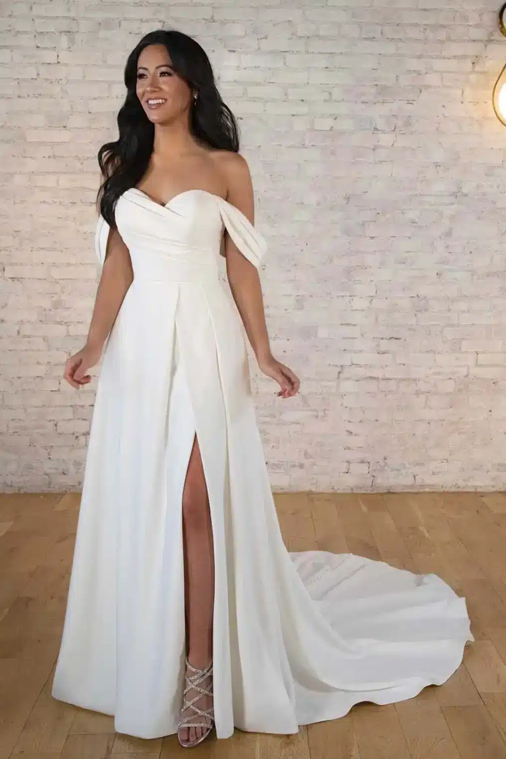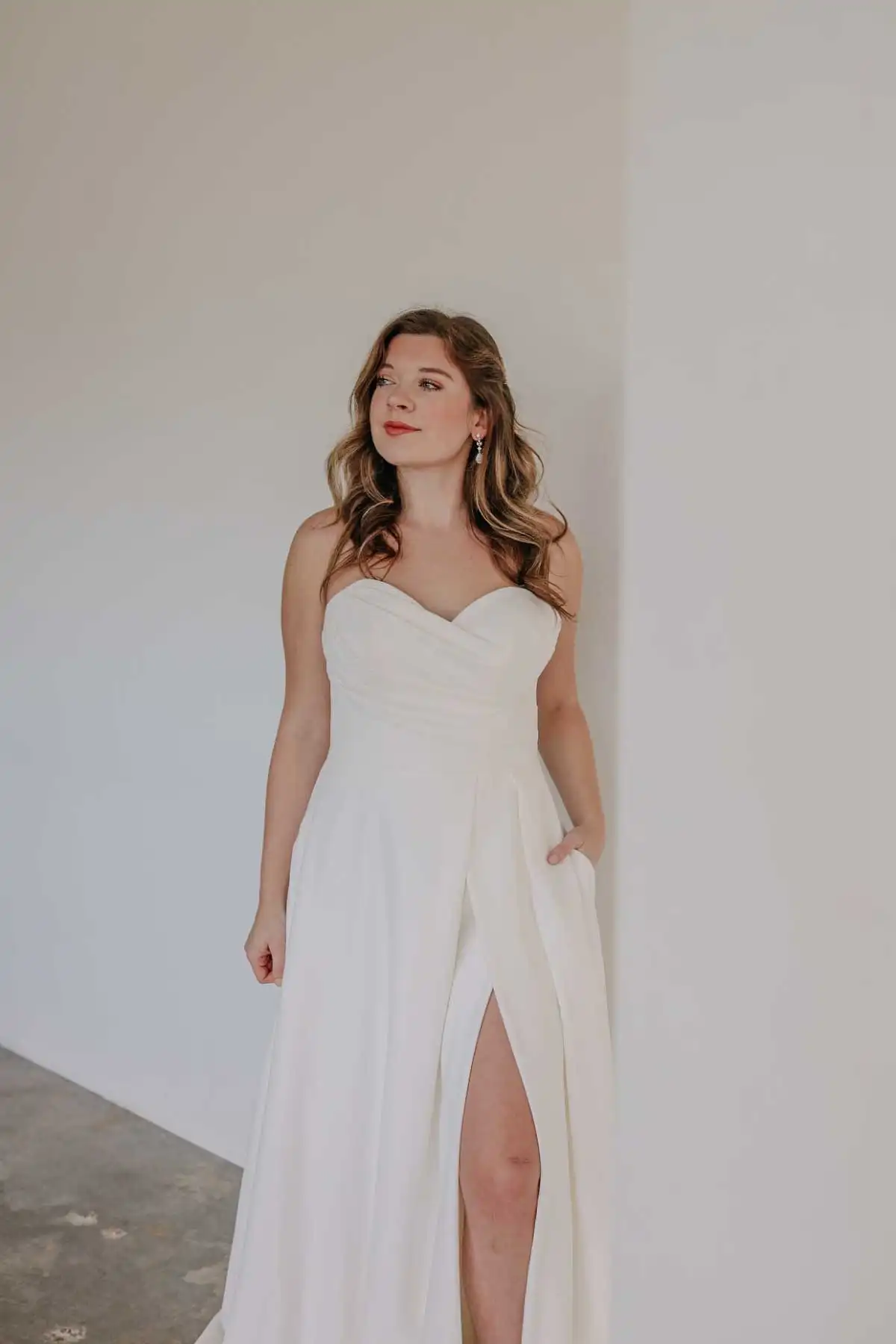 * Es handelt sich hierbei um die Größe unserer Musterkleider. Neubestellungen erfolgen in der Größe deiner Wahl. Bitte beachte zudem, dass einige Brautkleider internationaler Designer kleiner als die üblichen Konfektionsgrößen ausfallen. Falls du ein reduziertes Musterkleid kaufen möchtest, beachte bitte, dass diese schon mehrmals anprobiert wurden und daher Mängel und Flecken aufweisen können.