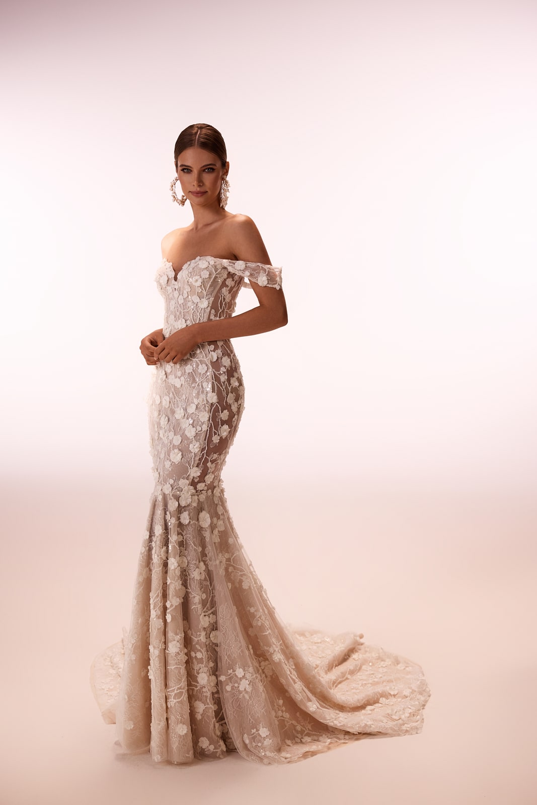 Glamouröses Meerjungfrauen-Kleid mit 3D Spitze und Off-Shoulder