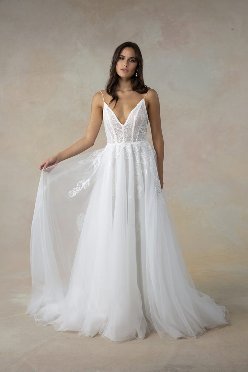 * Es handelt sich hierbei um die Größe unserer Musterkleider. Neubestellungen erfolgen in der Größe deiner Wahl. Bitte beachte zudem, dass einige Brautkleider internationaler Designer kleiner als die üblichen Konfektionsgrößen ausfallen. Falls du ein reduziertes Musterkleid kaufen möchtest, beachte bitte, dass diese schon mehrmals anprobiert wurden und daher Mängel und Flecken aufweisen können.