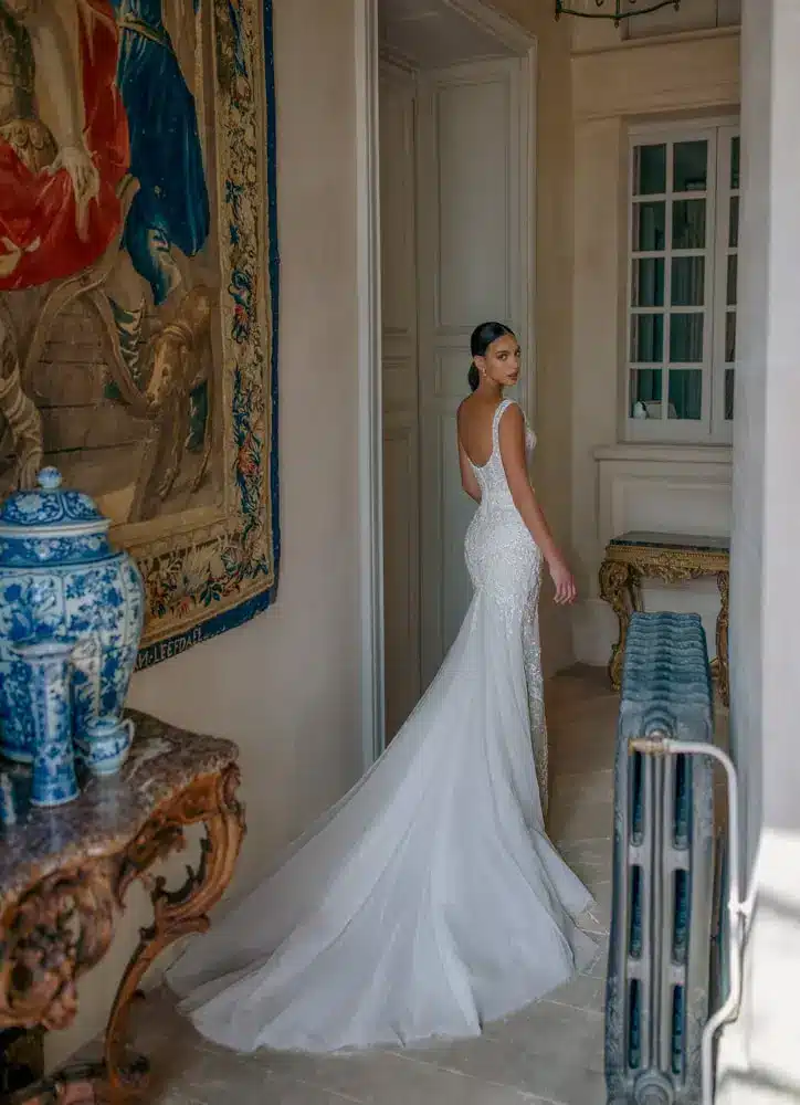 * Es handelt sich hierbei um die Größe unserer Musterkleider. Neubestellungen erfolgen in der Größe deiner Wahl. Bitte beachte zudem, dass einige Brautkleider internationaler Designer kleiner als die üblichen Konfektionsgrößen ausfallen. Falls du ein reduziertes Musterkleid kaufen möchtest, beachte bitte, dass diese schon mehrmals anprobiert wurden und daher Mängel und Flecken aufweisen können.
