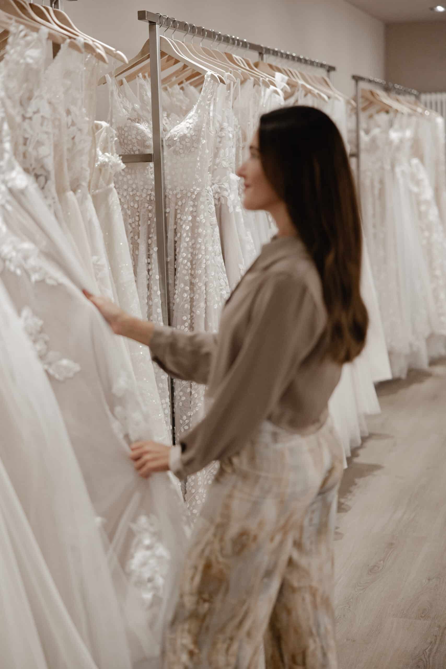 Stöbere durch unsere Kollektion (all unsere Kleider sind auf der Website aufgeführt) und bringe am besten deine Merkliste mit ca. 5 Kleidern zum Termin mit, die du am liebsten anprobieren würdest.
